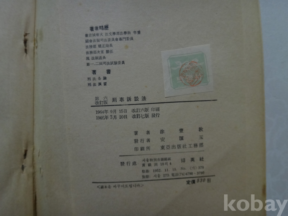 형사소송법 (1966년, 서일교, 박영사)