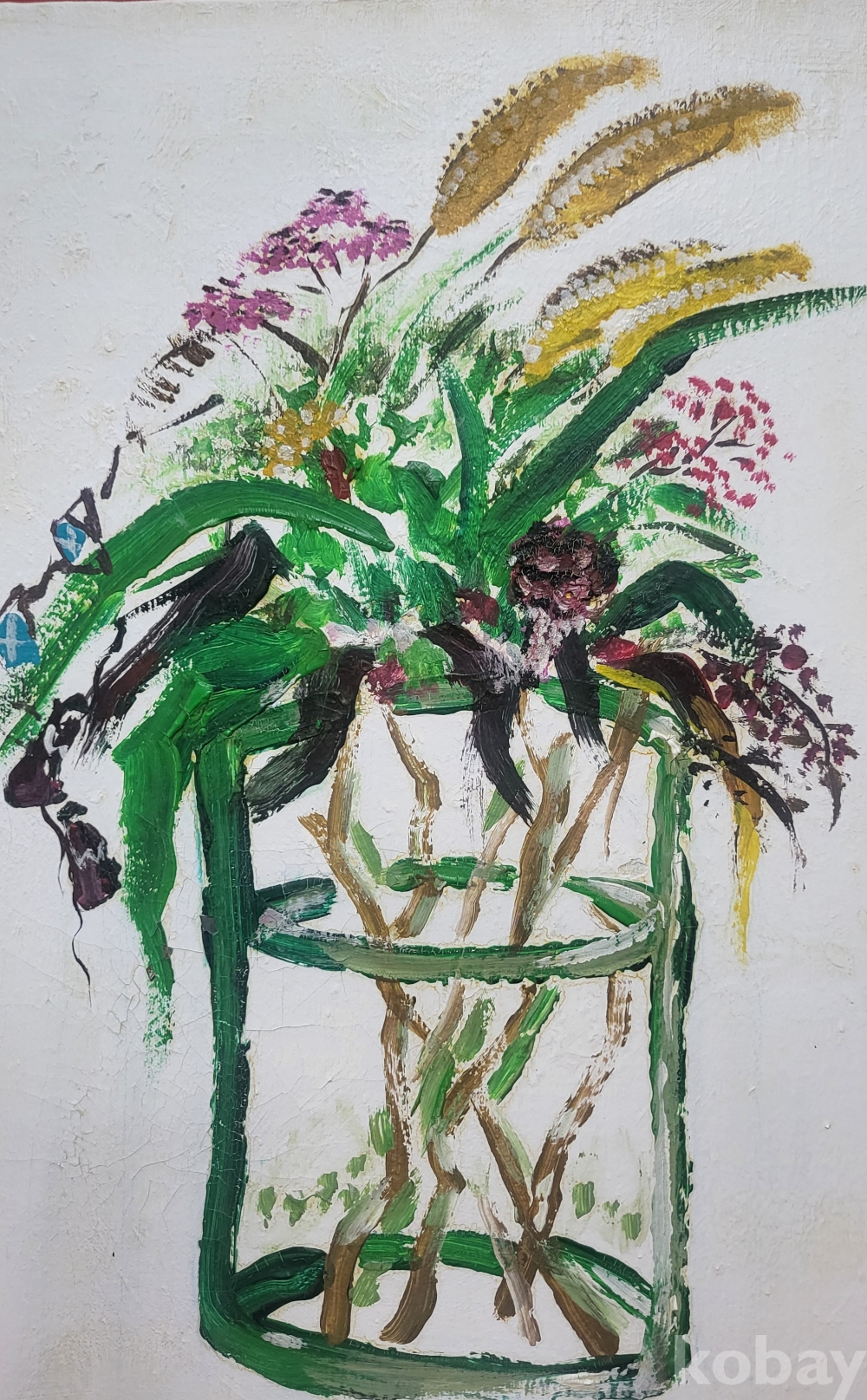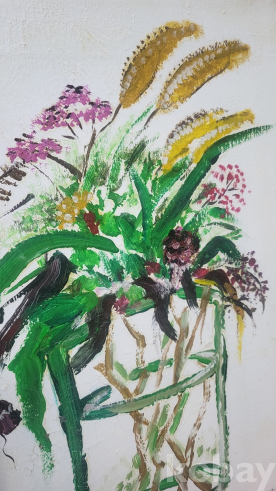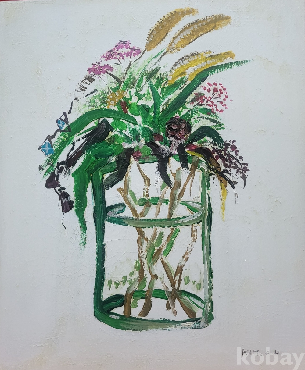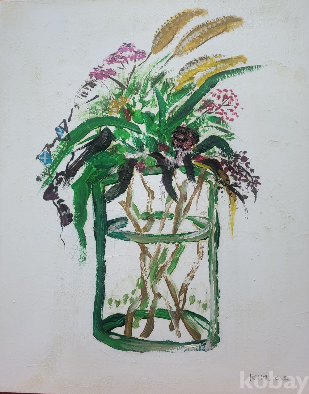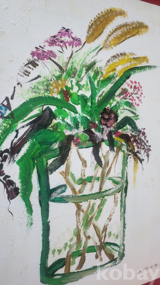 작가 사인이 보이는 켄버스 유화 정물화 8호입니다,