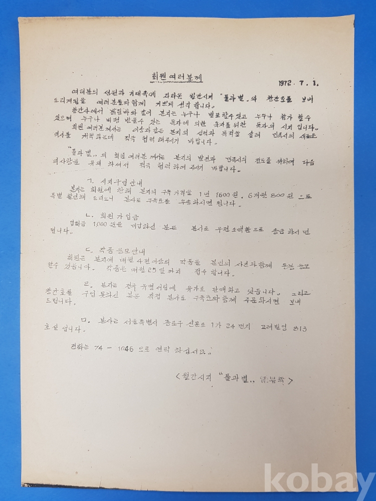 **** 근현대사 자료 - 월간시지"풀과 별"창간호 안내문