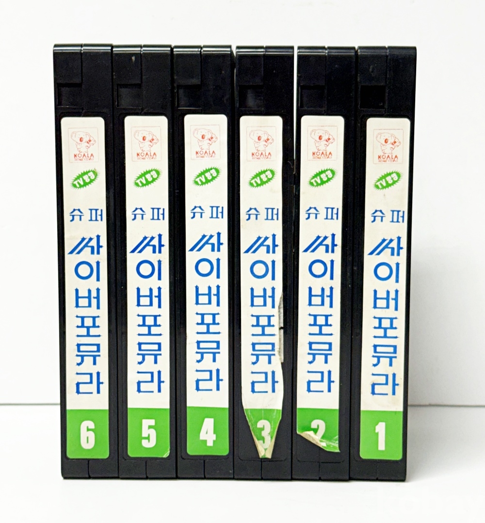 상품 설명 | 1) 슈퍼 싸이버포뮤라 1편 / 1996년 / 케이스 모서리 깨짐, 테이프 곰팡이 있음 2) 슈퍼 싸이버포뮤라 2편 / 1996년 / 테이프 라벨 일부 떨어짐, 테이프 곰팡이 있음 3) 슈퍼 싸이버포뮤라 3편 / 1996년 / 테이프 라벨 일부 떨어짐, 테이프 곰팡이 있음 4) 슈퍼 싸이버포뮤라 4편 / 1996년 / 테이프 곰팡이 있음 5) 슈퍼 싸이버포뮤라 5편 / 1996년 / 케이스 모서리 비닐 벗겨짐, 테이프 곰팡이 있음 6) 슈퍼 싸이버포뮤라 6편 / 1996년 / 케이스 모서리 비닐 벗겨짐, 테이프 곰팡이 있음 |