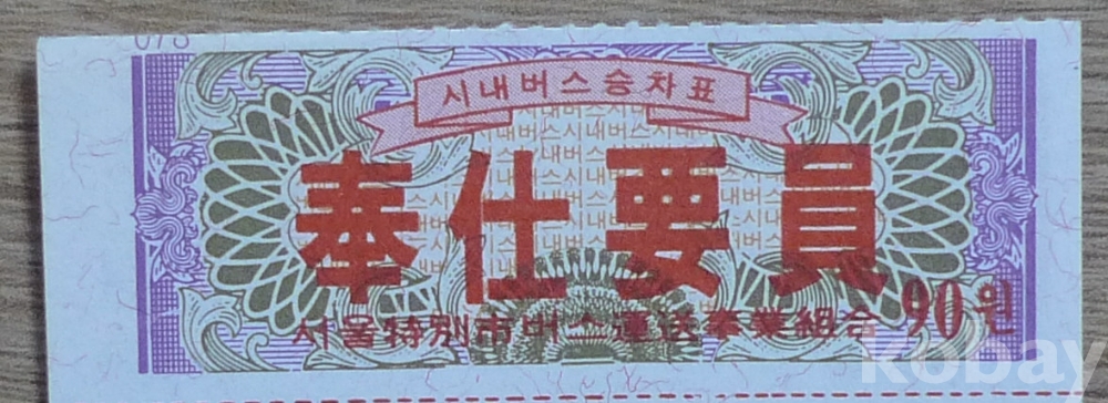 1986년 아시안 게임 봉사 요원 한정 서울 시내버스 승차표