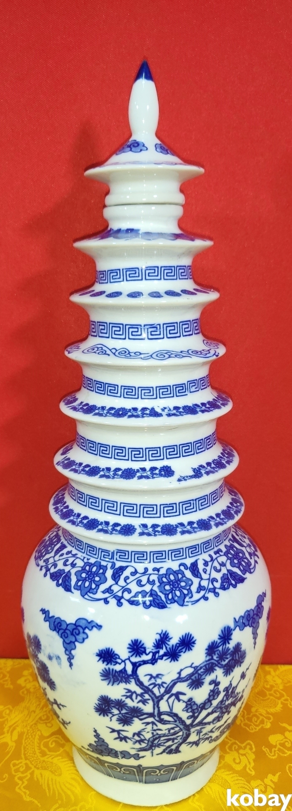 건륭어제 청화 탑형상 수림문양 병입니다,