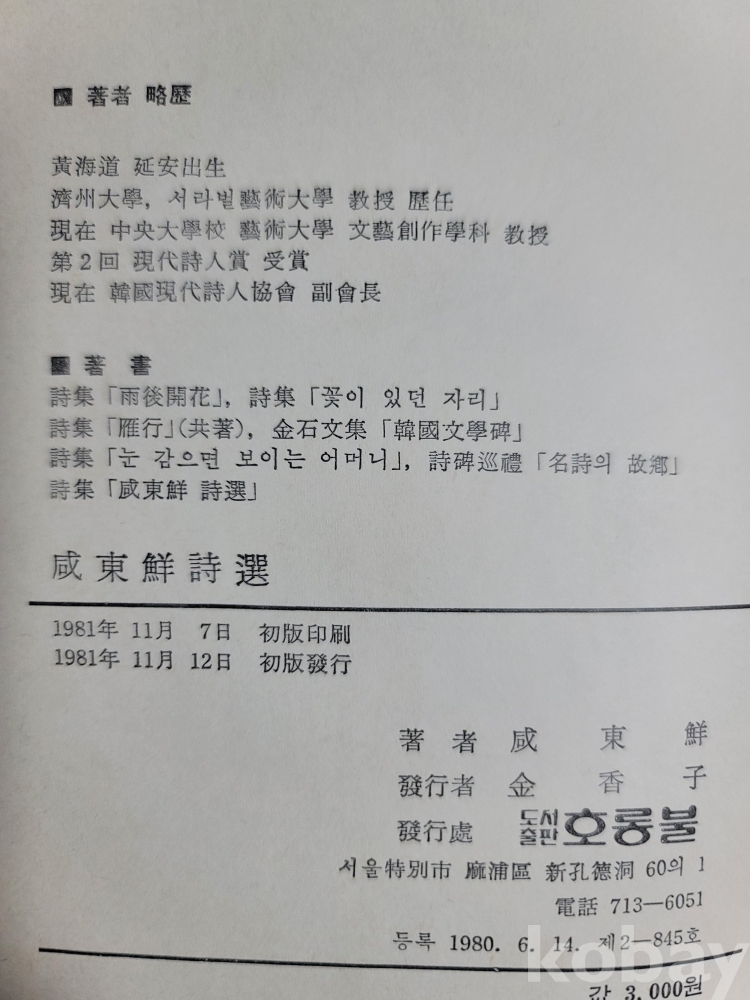 1981년 발간한 시선집 『咸東鮮 詩選』