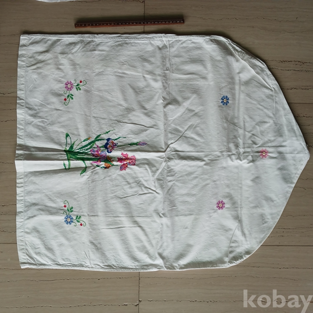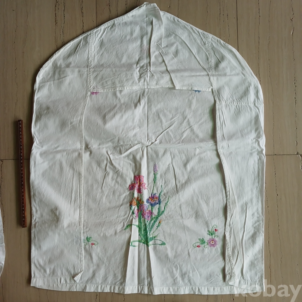 해방이 됨과 동시 우리 자수는 전통자수에서 벗어나 유럽이나 미국쪽에서 유입된 자수기법이 온 나라에 유행했던 시절이 있었지요 ᆢ 세탁이 가능하고  광목흰바탁에 다양한 도안으로  아름다움을 표현 할 수있었지요  그때 유물을 상태좋은것만 선별하여  수집 해왔던 작품의 양복 커버입니다 벽에 걸어두면  그 자체만도 아름다운 작품입니다ㆍ  그  공력은 값으론 계산 되지않은 노력의 결과물입니다  ᆢ