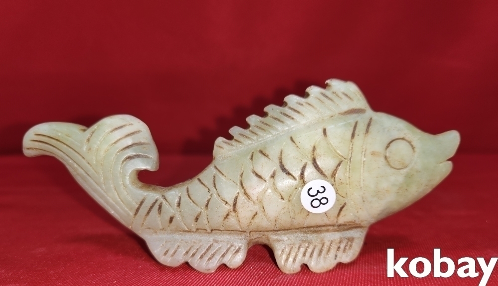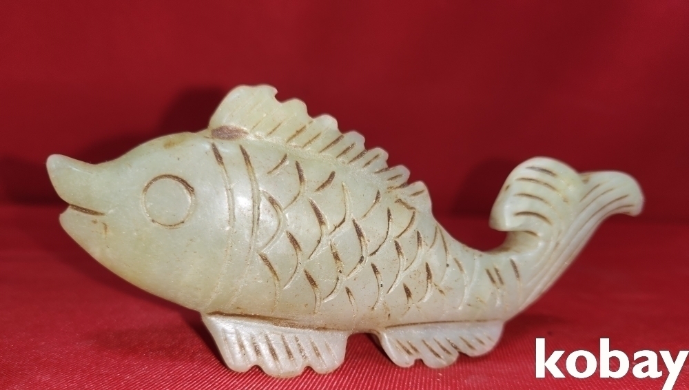 백옥(白玉)으로 만든 물고기 문양 조각품으로 장식성이 좋습니다,