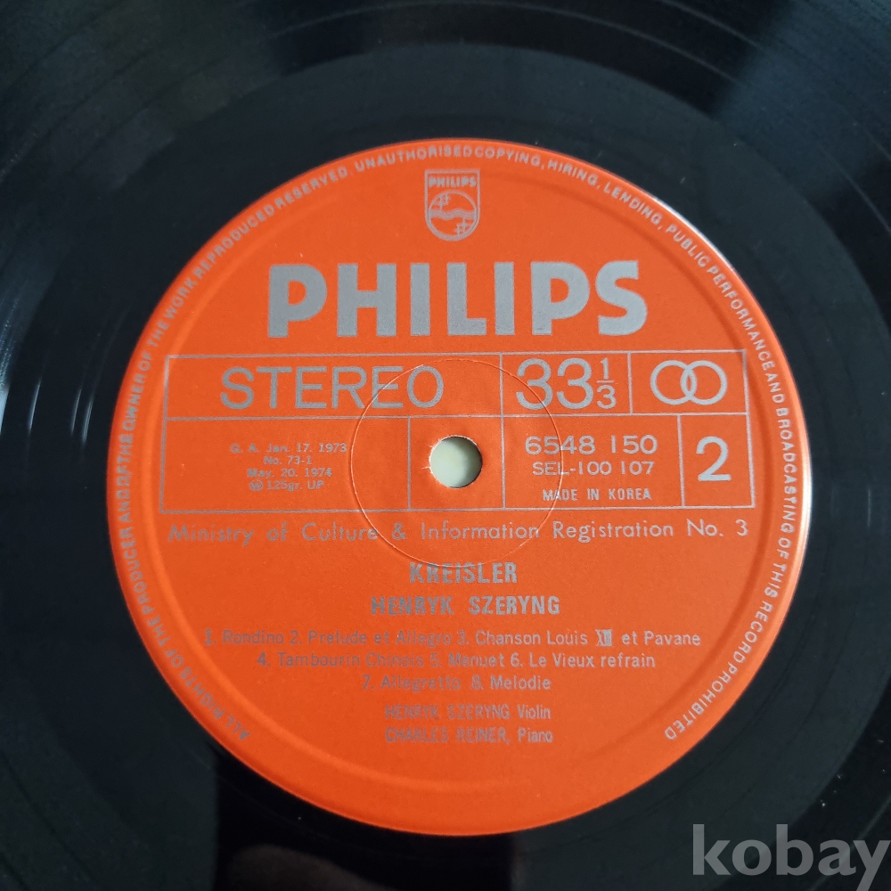 헨릭 쉐링 (Henryk Szeryng Plays Kreisler) PHILIPS 성음