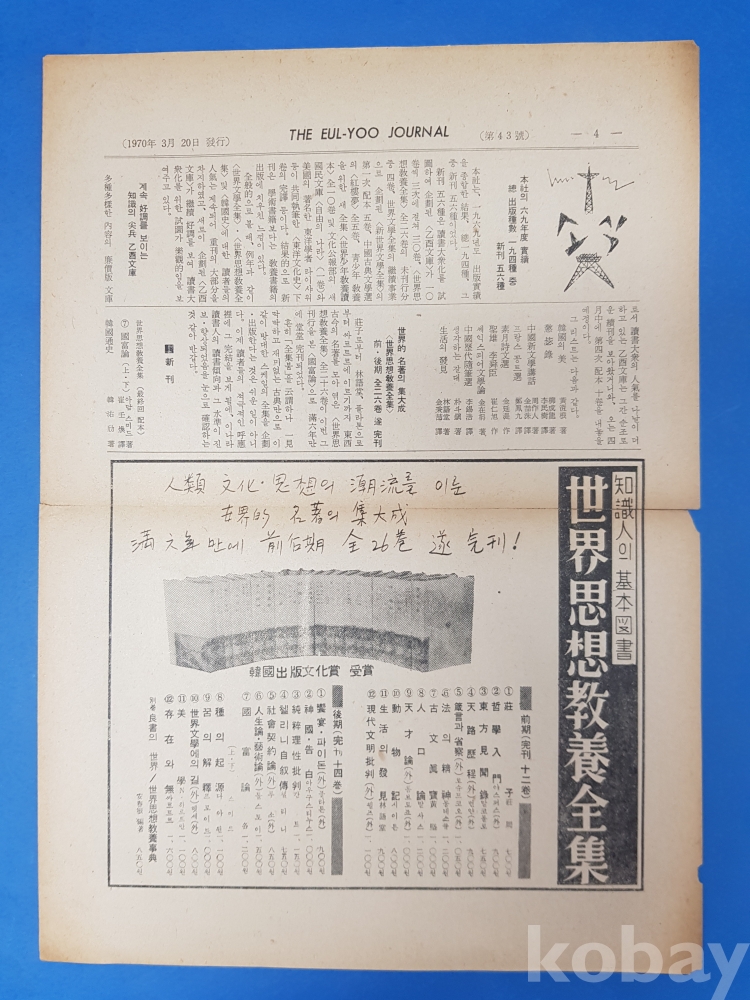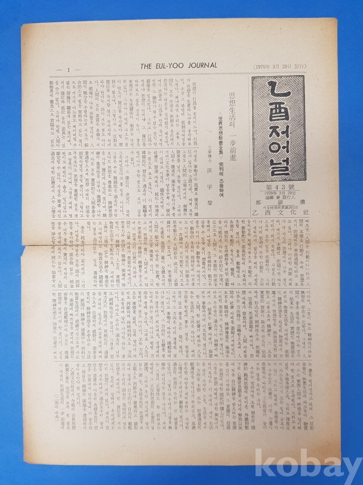 **** 근현대사 자료 - 을유저널(乙酉저어널)/1970년3월20일