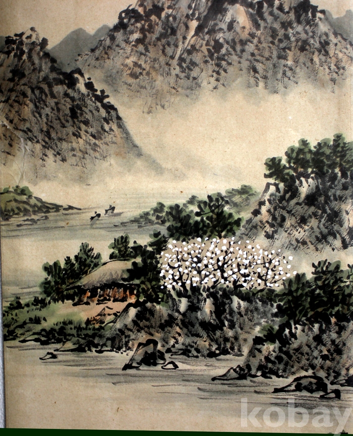 米田(미전) 김영우의 춘경산수 - 복사꽃이 있는 강가의 봄 풍경