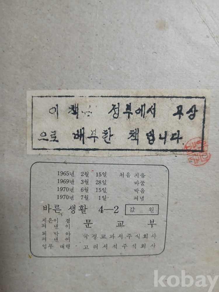 1970년 국민학교 4 바른생활 교과서