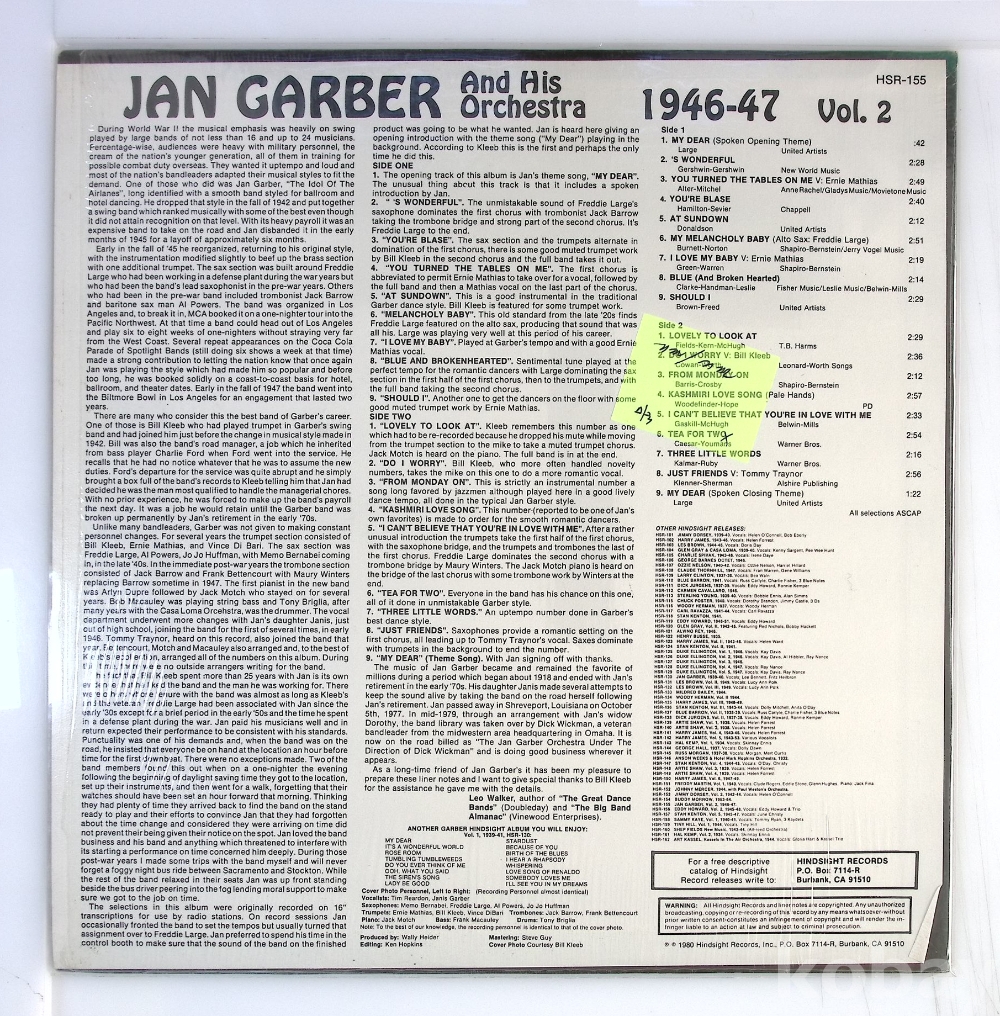 Jan Garber And His Orchestra – The Uncollected Jan Garber, Vol. 2, 1946-1947 / 미국반