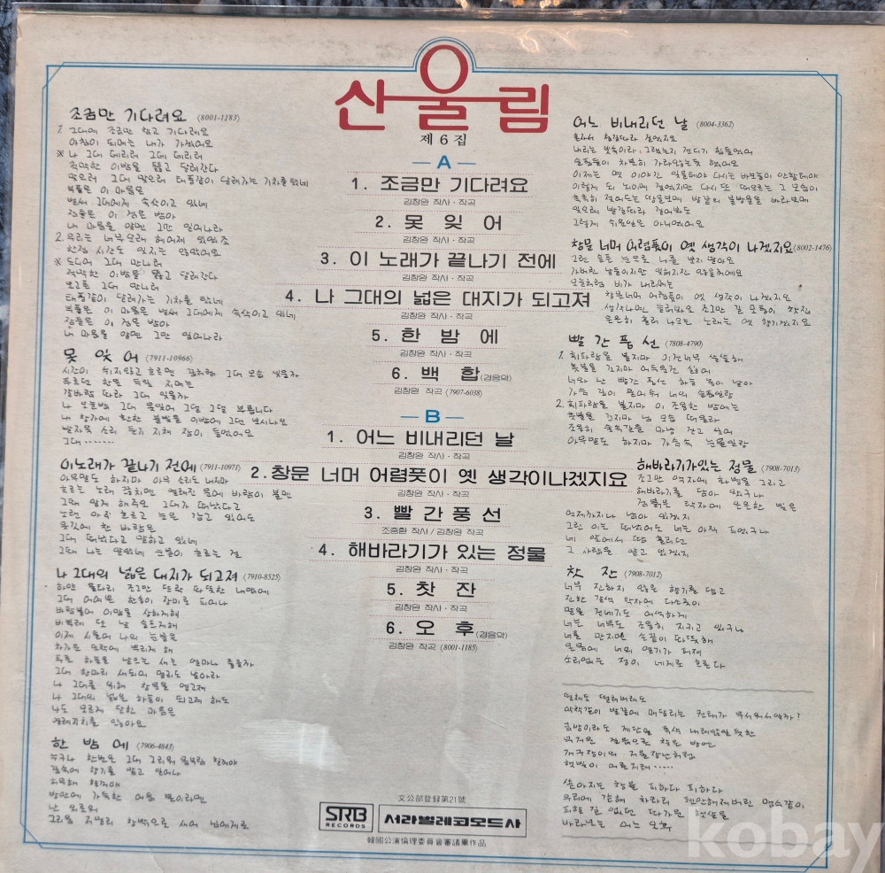 산울림 6집 초반입니다. 상태 좋습니다.