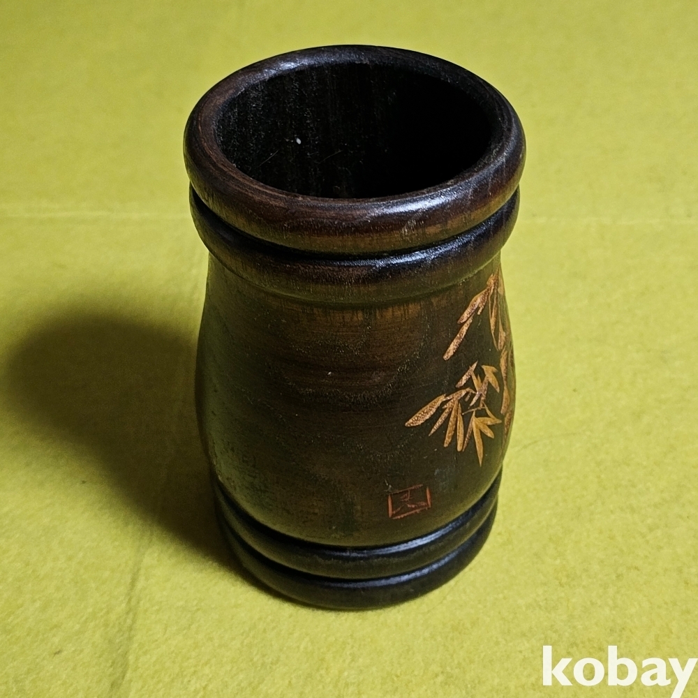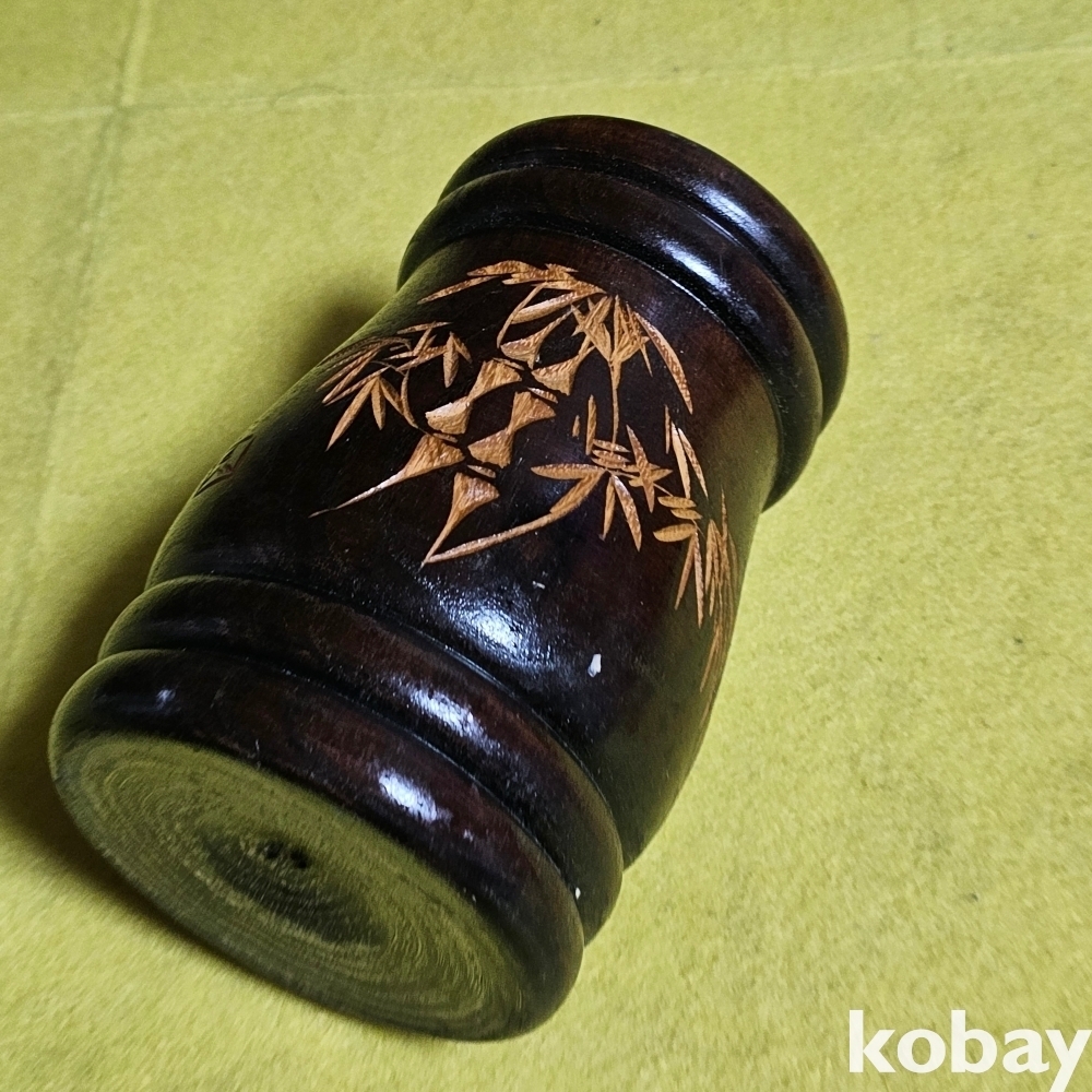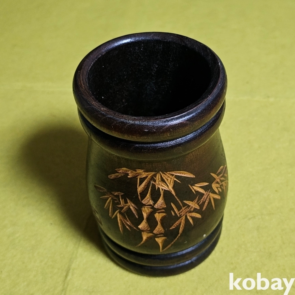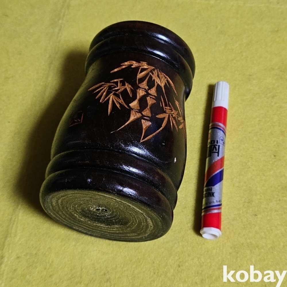 (((나무붓통/연필꽂이))) 오래전 대나무그림 음각 나무붓통 (연필꽂이)