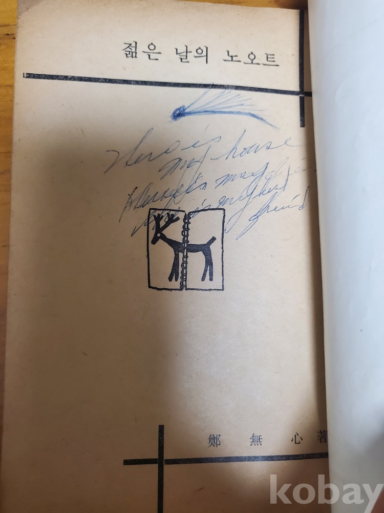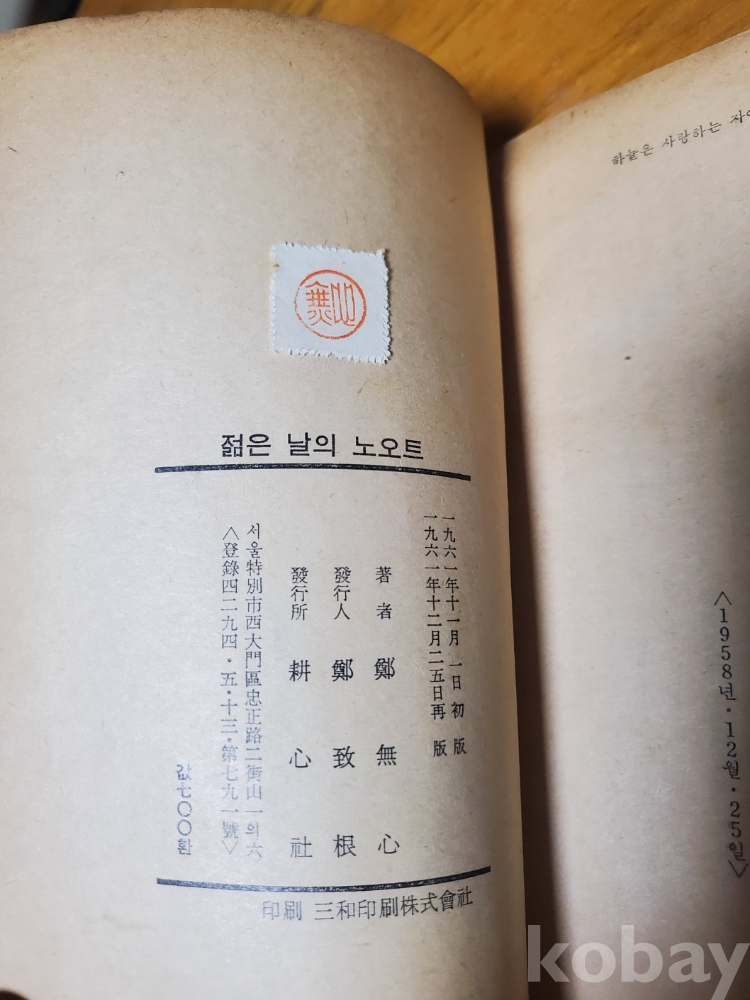1. 젊은 날의 노오트, 정무심, 경심사, 1961년, 222쪽, 상태 상, 사진 참조