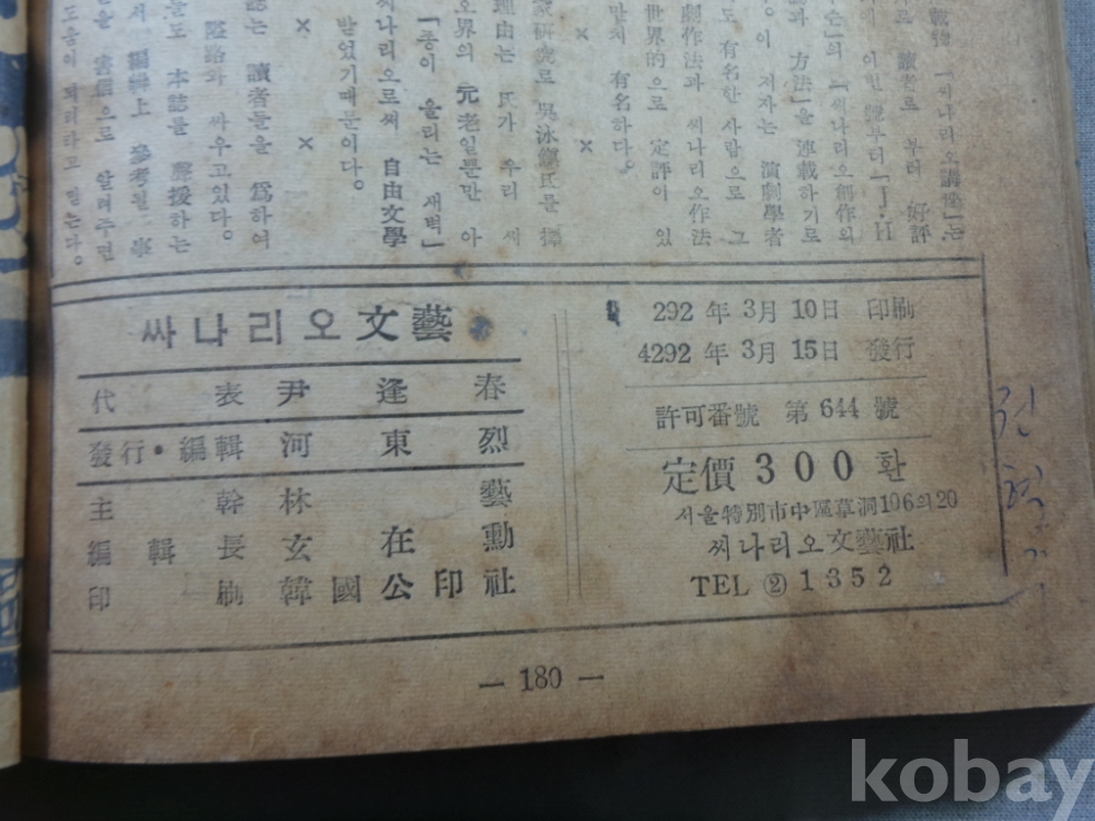 (귀한 근대사 책 모음전) 매우 귀한 씨나리오 문예 잡지,1959년 초판