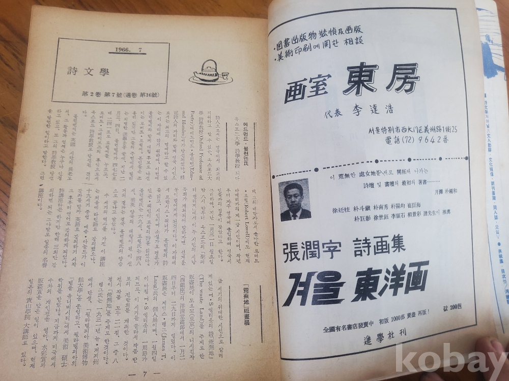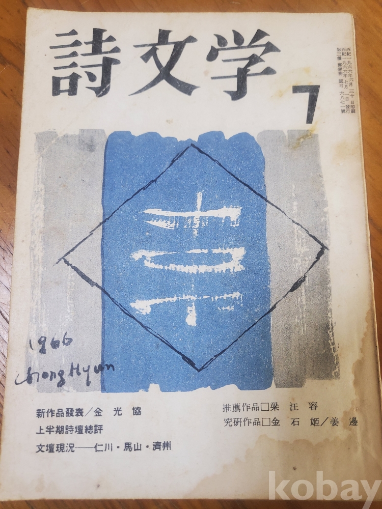 1. 시문학 통권 16호, 청운출판사, 1966년, 66쪽, 상태 상, 사진 참조