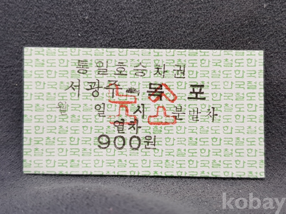 - 미사용 통일호 승차권 노소 " 서광주 ▶ 목포 " 900원