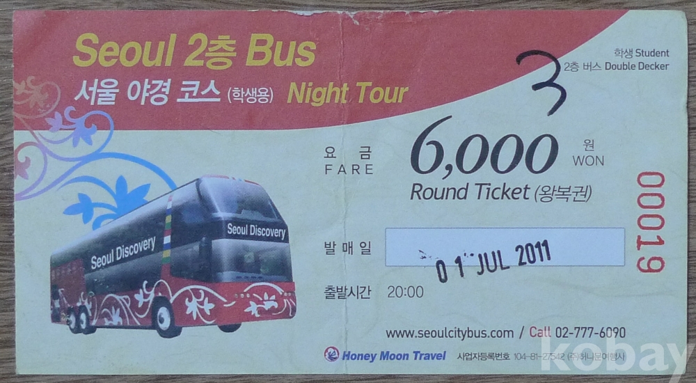 2011년 서울 야경 버스 학생용 왕복권