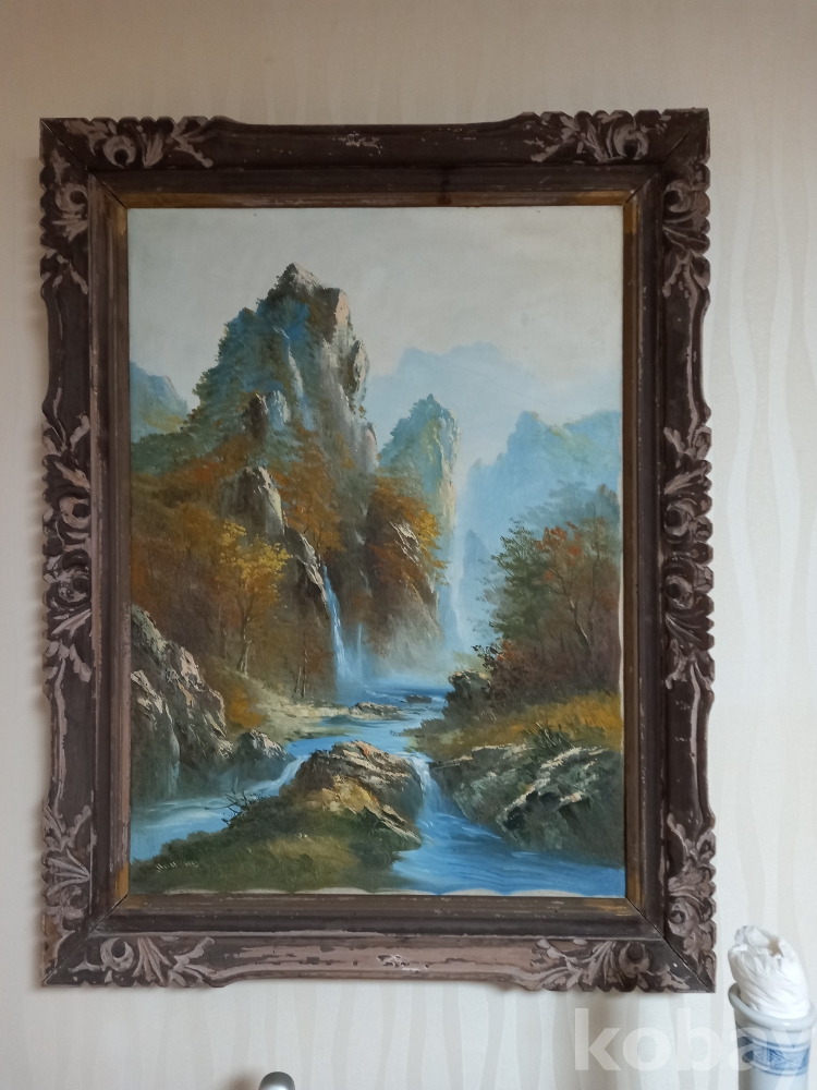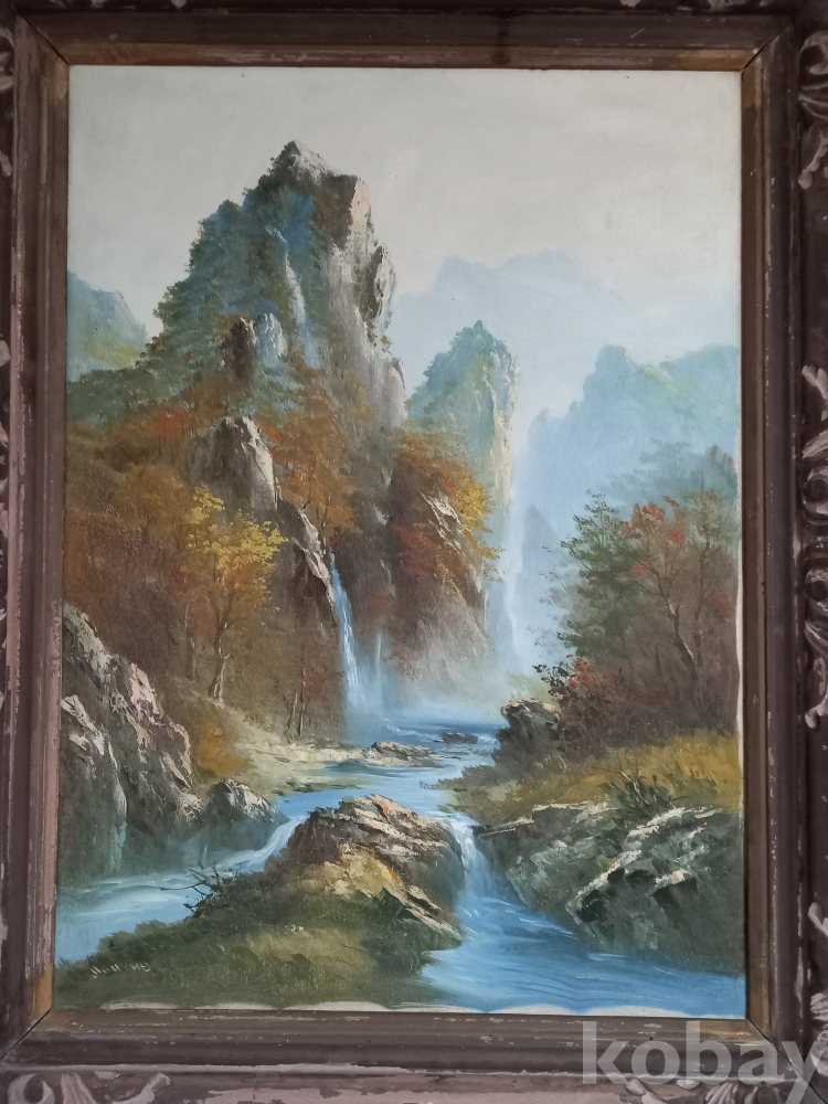 산수화를 엣날 동양화 처럼 그렸습니다 손수 나무 액자 입니다