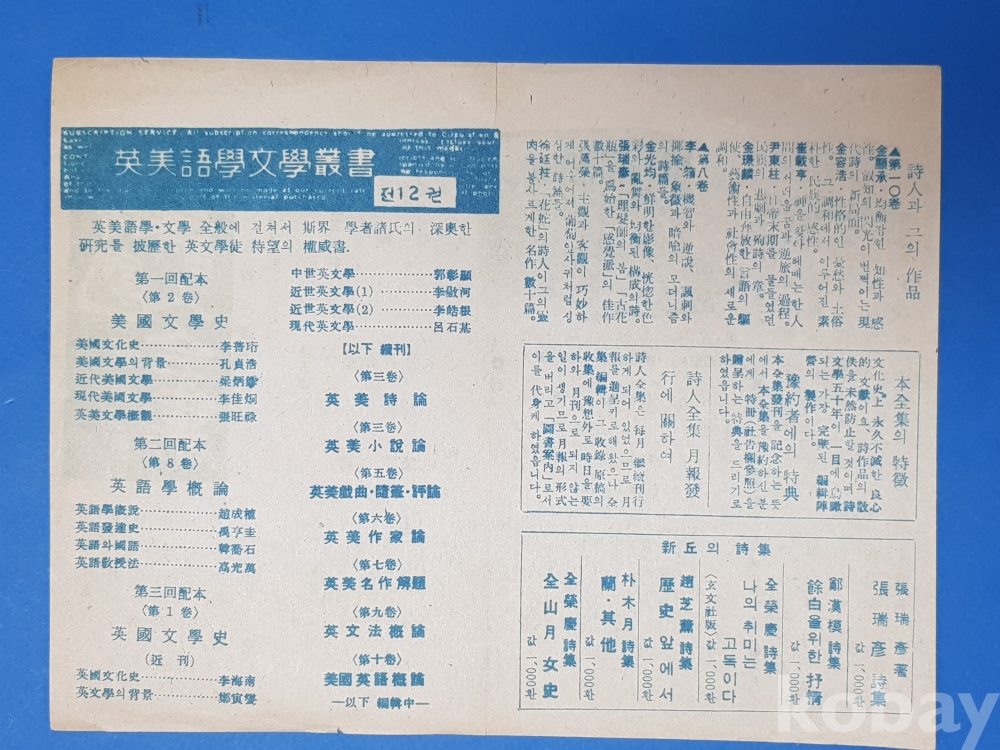 **** 근현대사 자료 - 한국 현대 시인 전집/홍보책자
