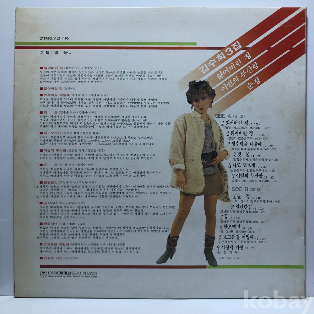 LP 86,050-10 김수희 - 3집 (잃어버린 정) _ 자켓 EX+ 알판 EX+ 84 년 국내반