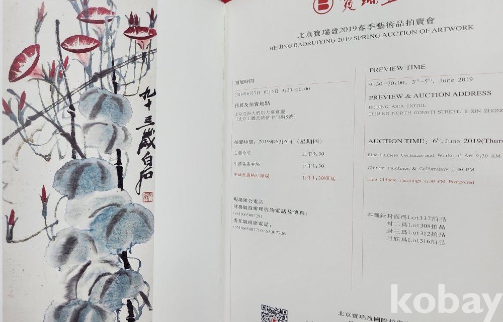 2019년 중국 고서화(古書畵) 경매 도록입니다,