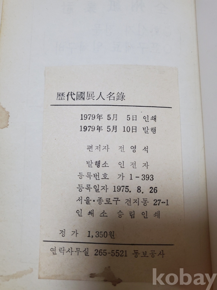 1. 역대국전인명록, 인전자, 1979년, 130쪽, 상태 상, 사진 참조