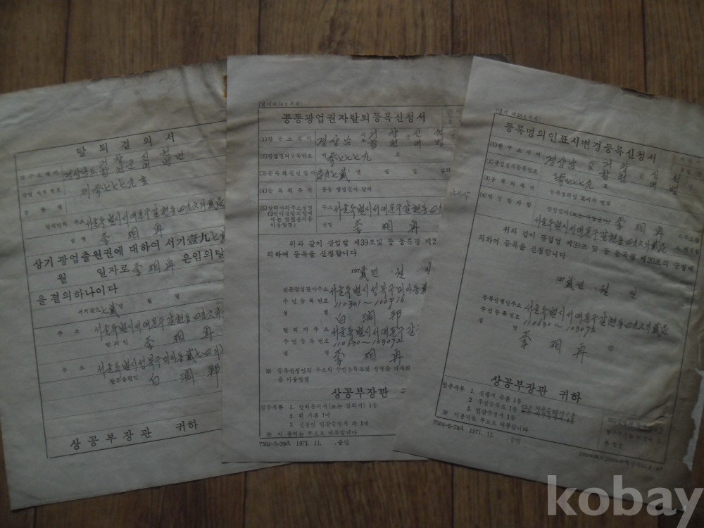 1972년 광업관련 서류 3종