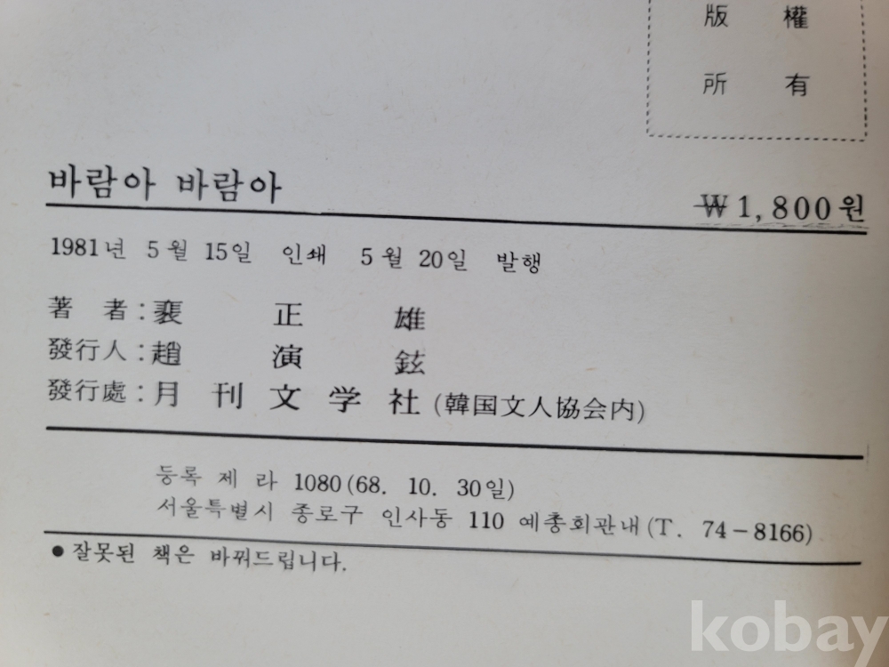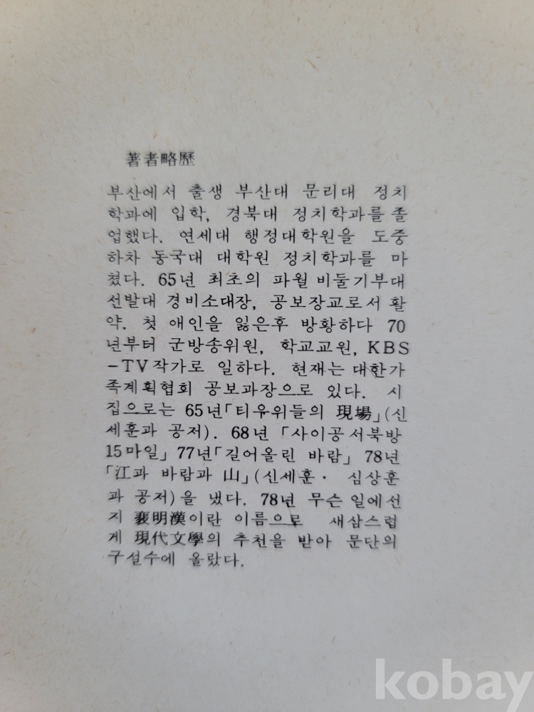 月刊文學社에서 발행한 시집. 84쪽. 15.1X21.3X0.6cm