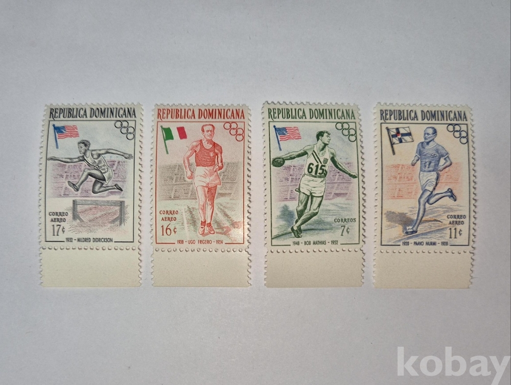1957년 발행된 도미니카공화국 올림픽 기념우표 4종입니다.