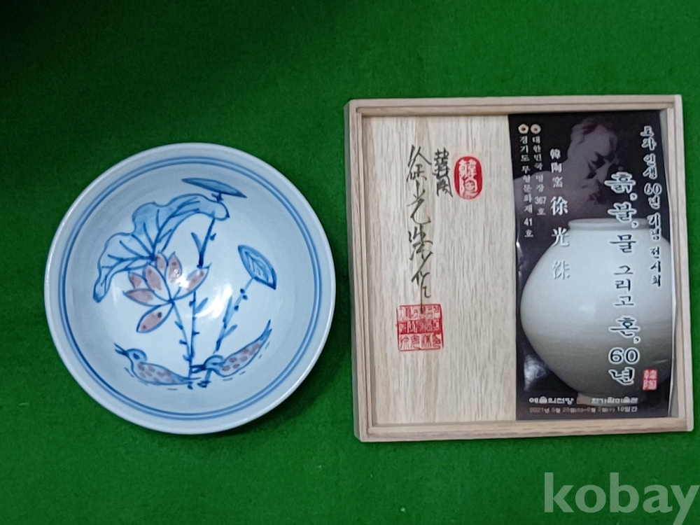 무형문화재 한도 서광수 명장 청화백자 진사채 연꽃 원앙문 발 입니다