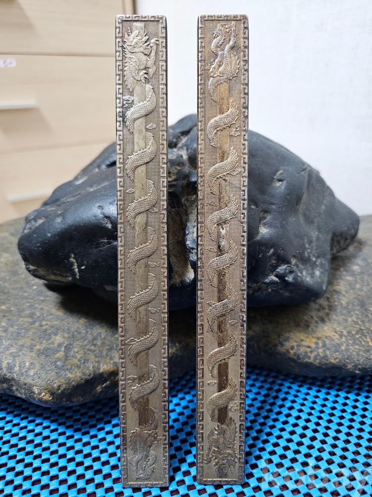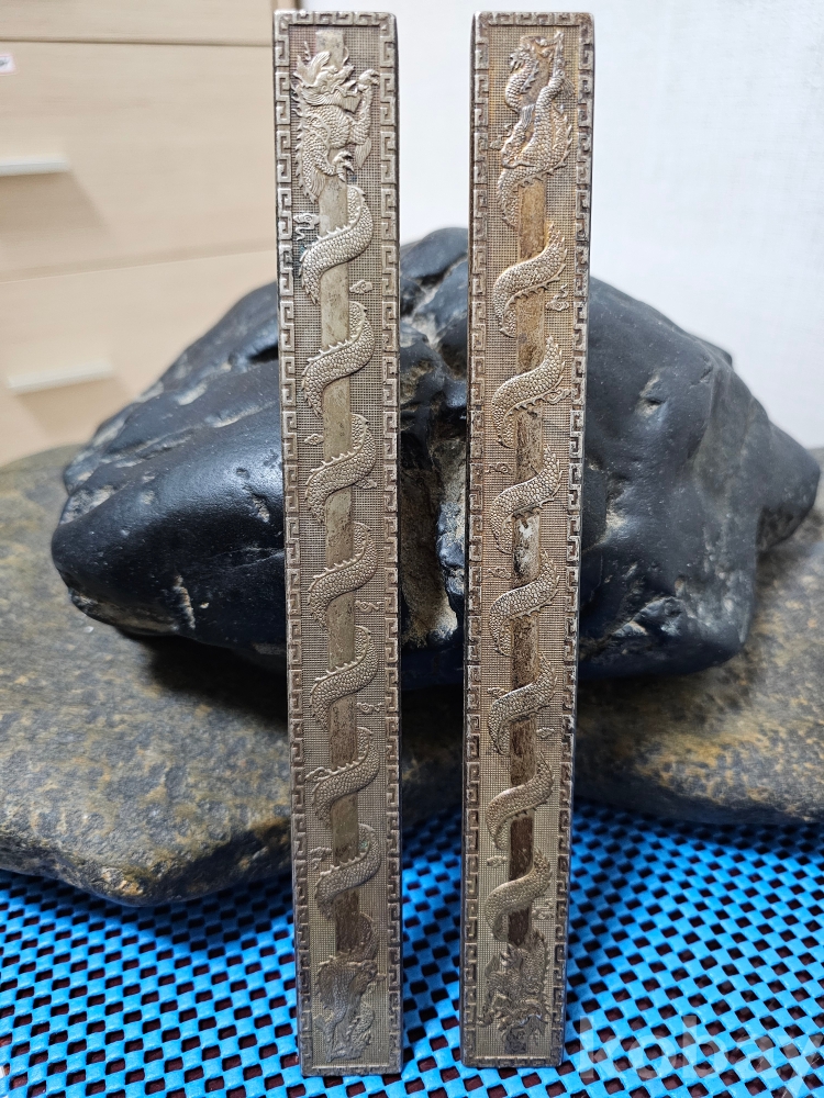 足銀(족은) 각인 용문(龍紋) 은 문진 한쌍입니다.