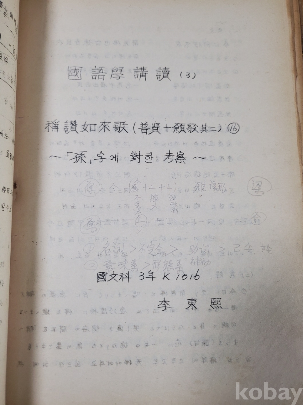 3. 참고 : 이동희 교수는 대구 모 대학의 국문과 교수로 퇴직했으며 1960년대 초 청구대학 국문과 재학시절 수업 관련 자료임 / 1961년 청구대학 국문과 4학년 재학 //