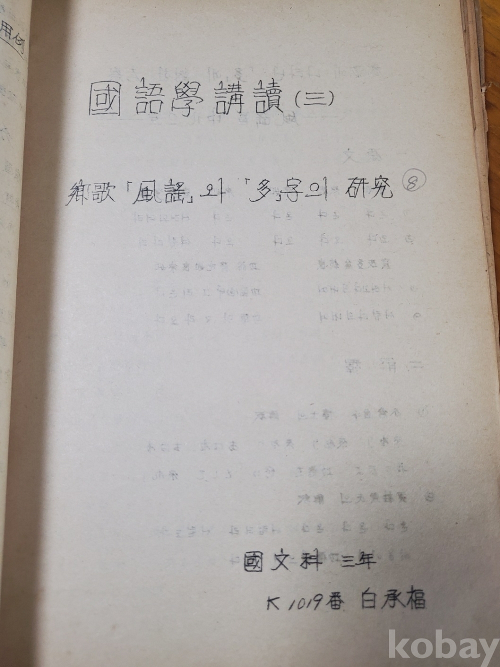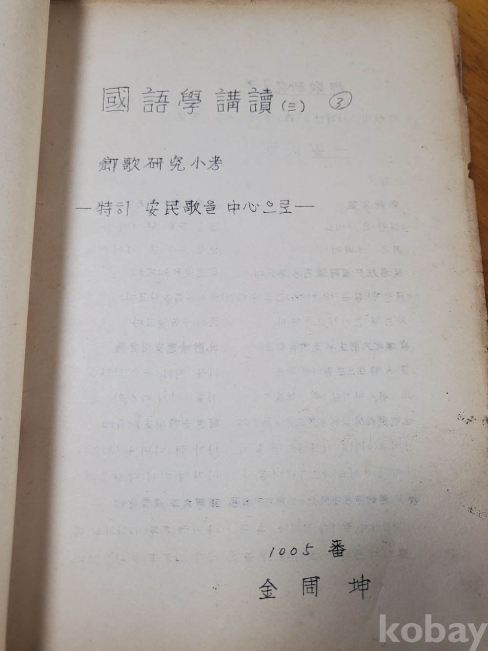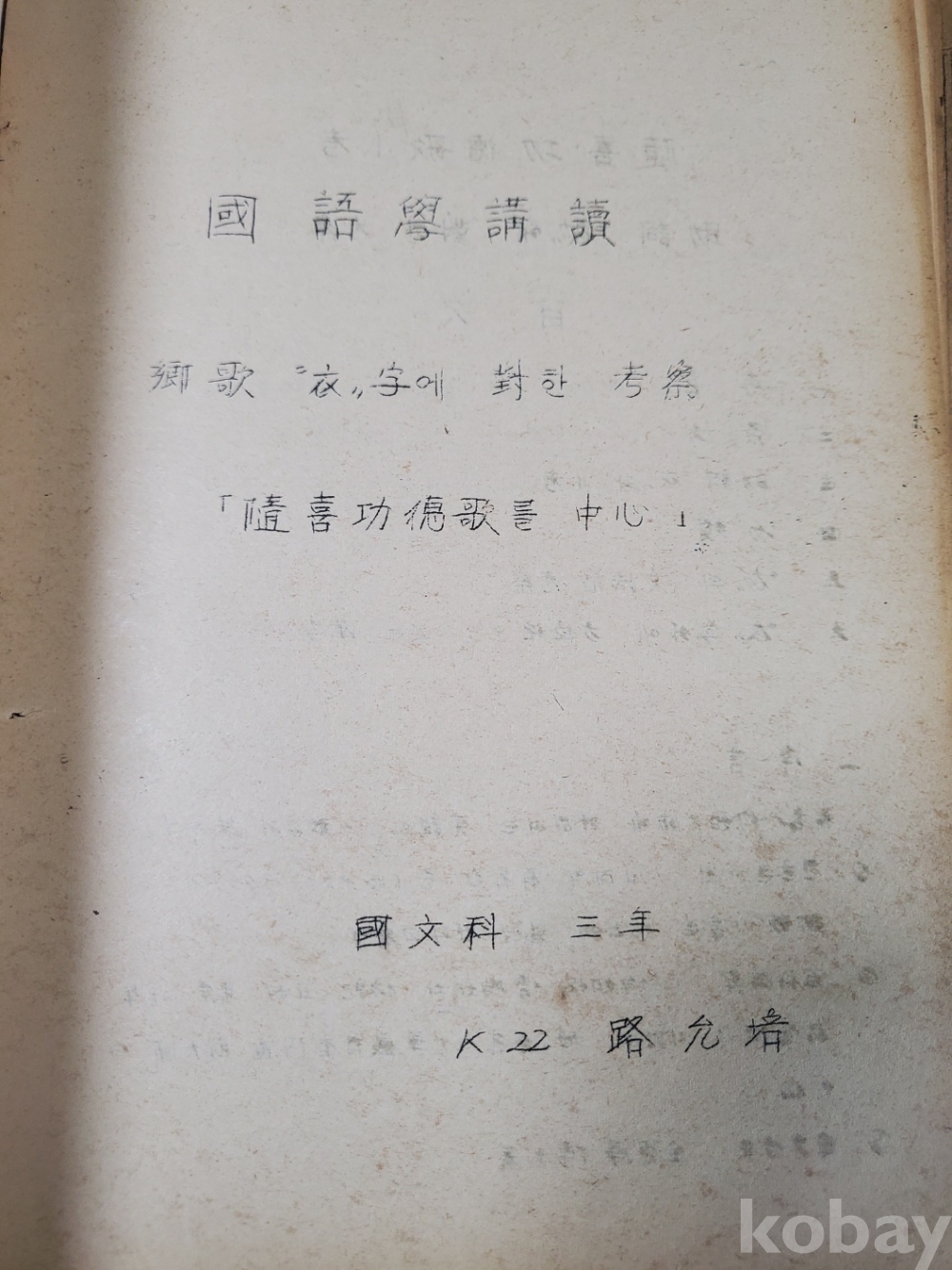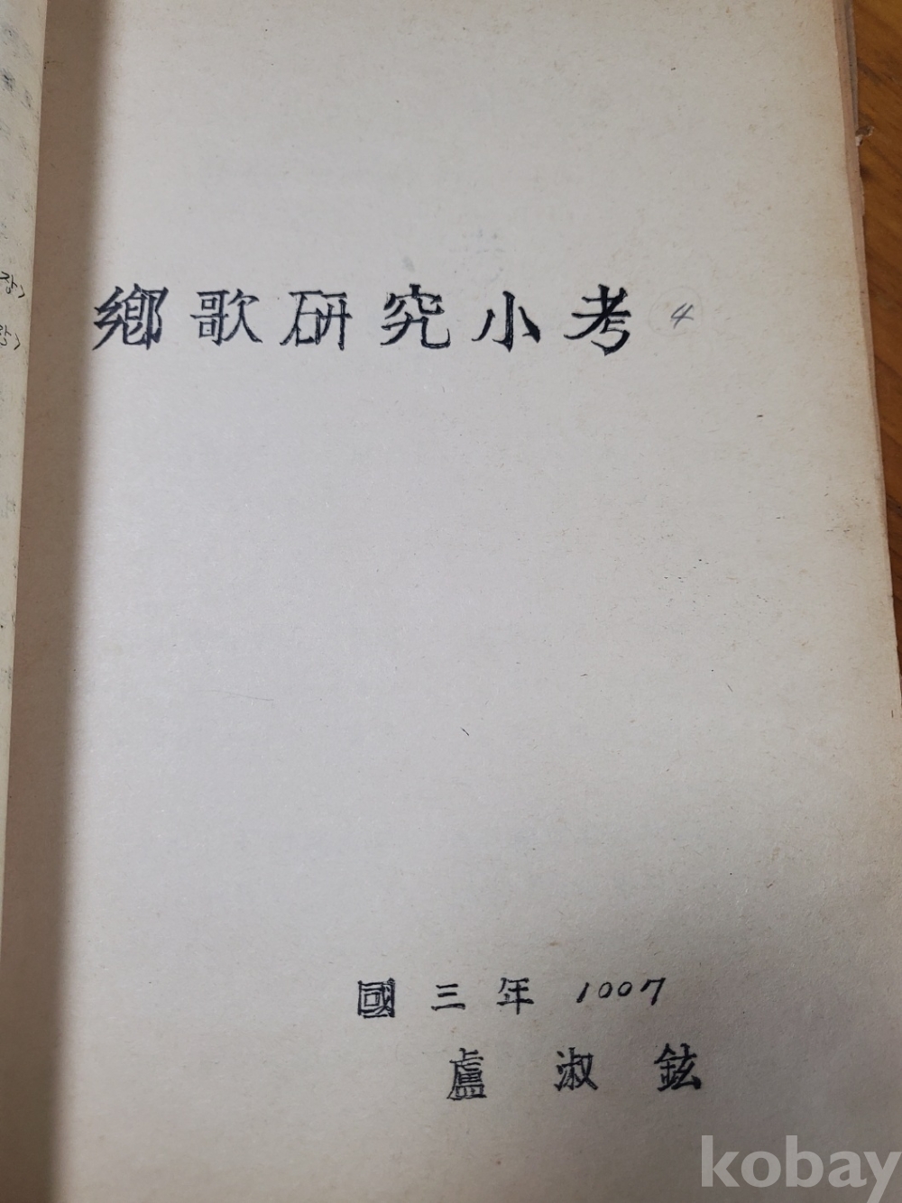 1. 향가연구, 1960년으로 추정, 철필본, 상태 상, 사진 참조