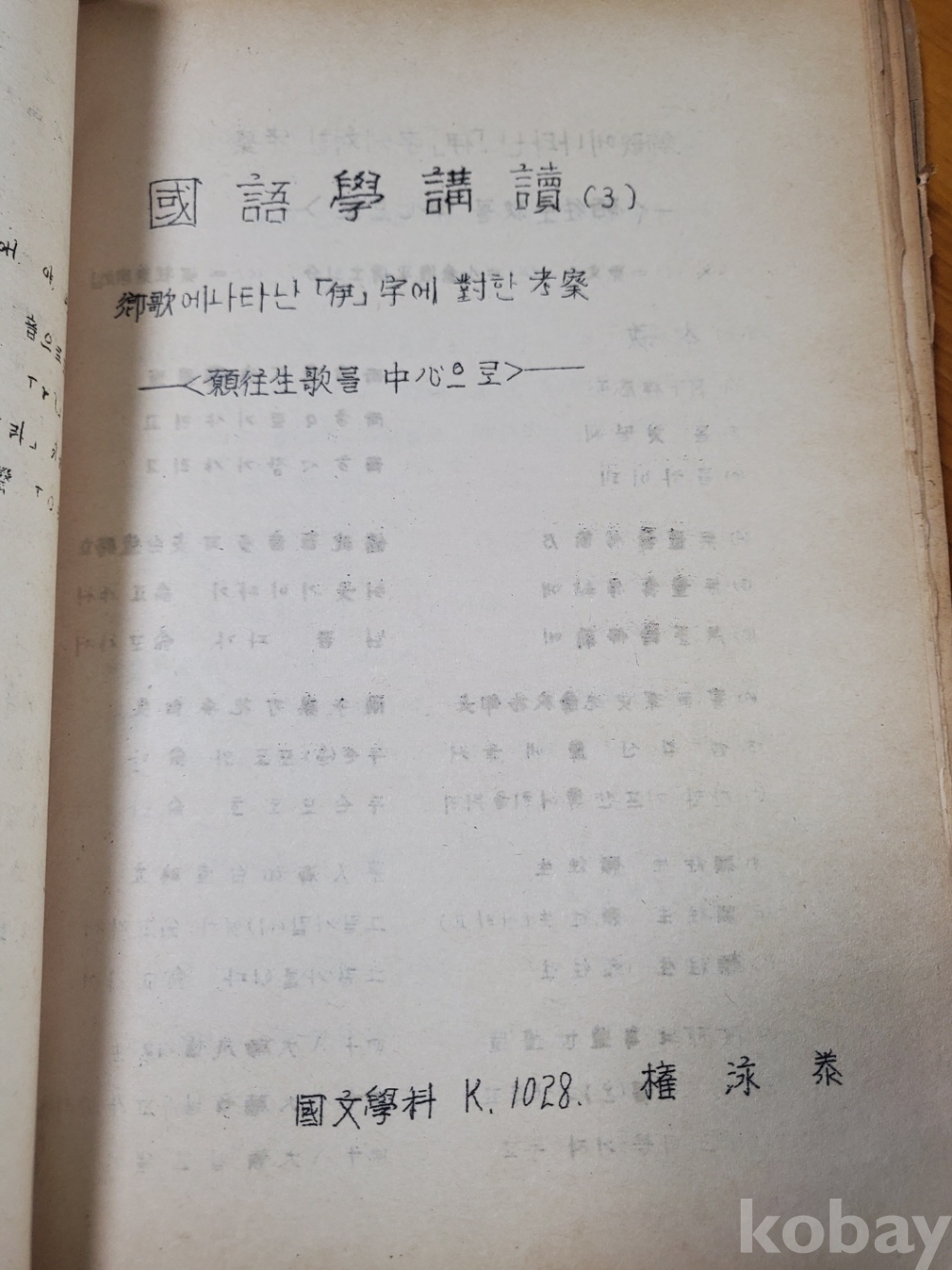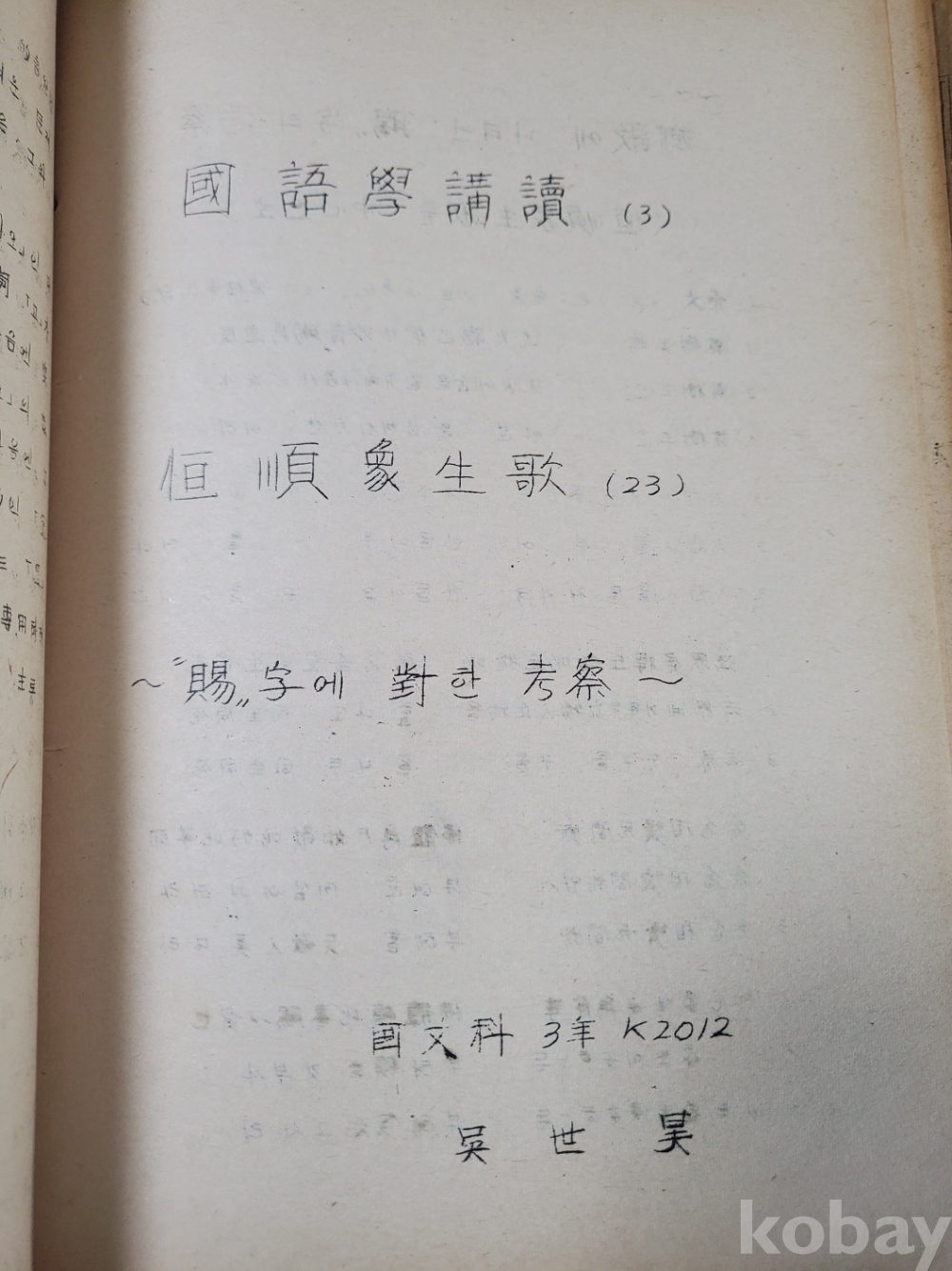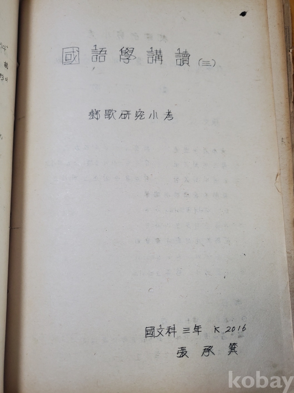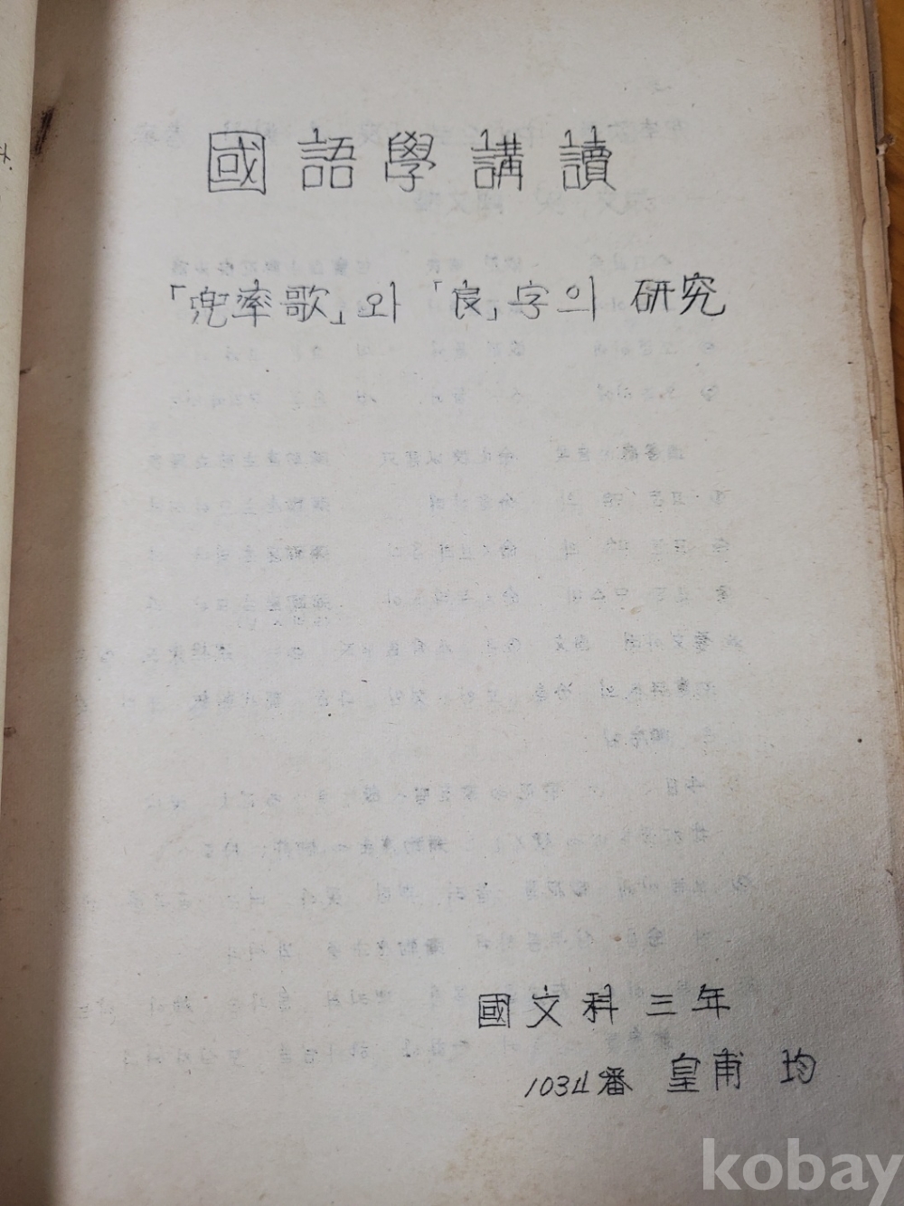 1. 향가연구, 1960년으로 추정, 철필본, 상태 상, 사진 참조