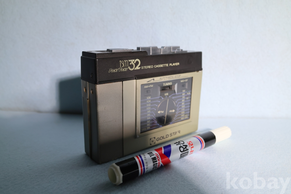 본 출품작은 대한민국 휴대용 음향기기 역사의 태동기를 완벽하게 증명하는 매우 귀중한 사료, 옛 금성사(현 LG전자)의 극초기형 미니 카세트 플레이어 'TSM-32'입니다.