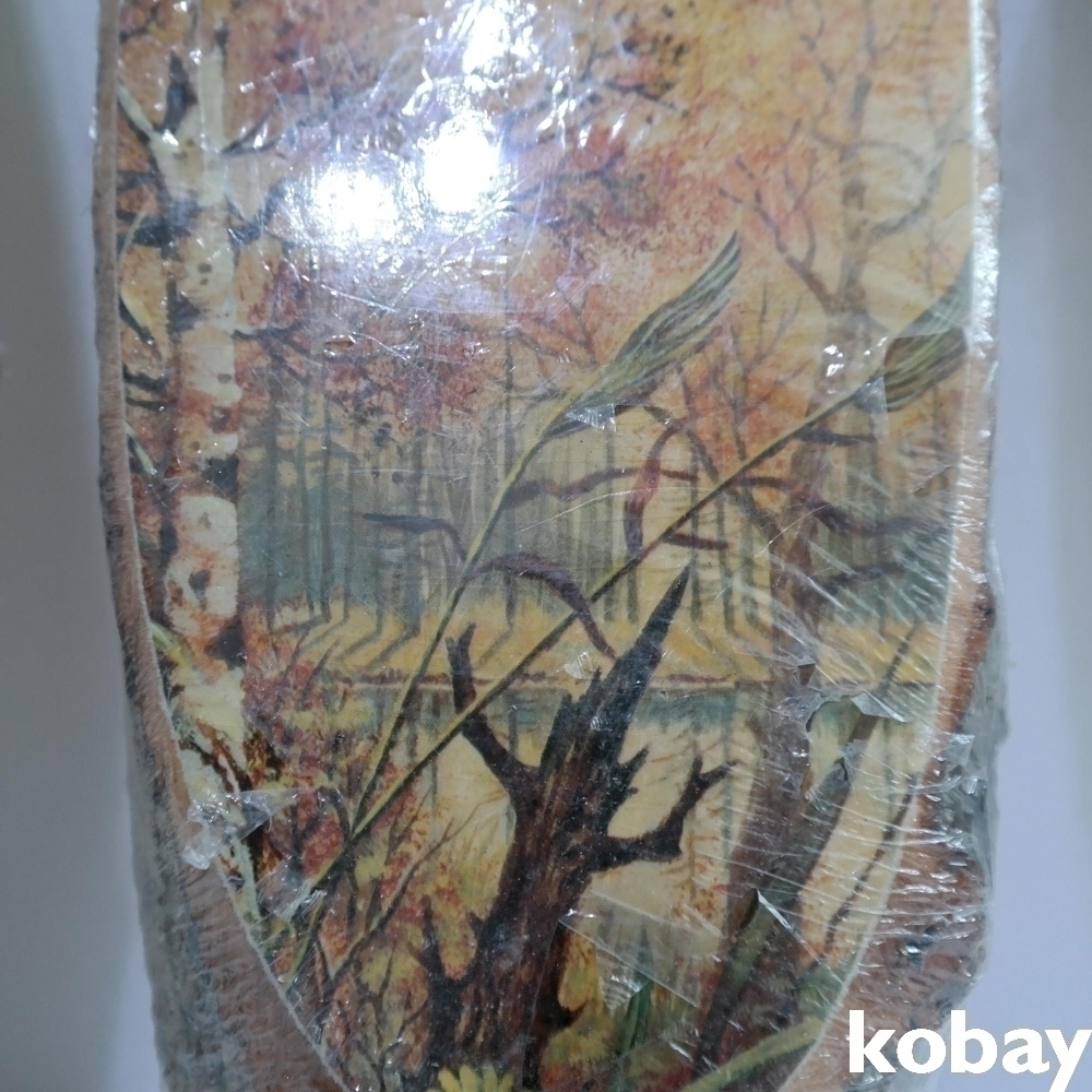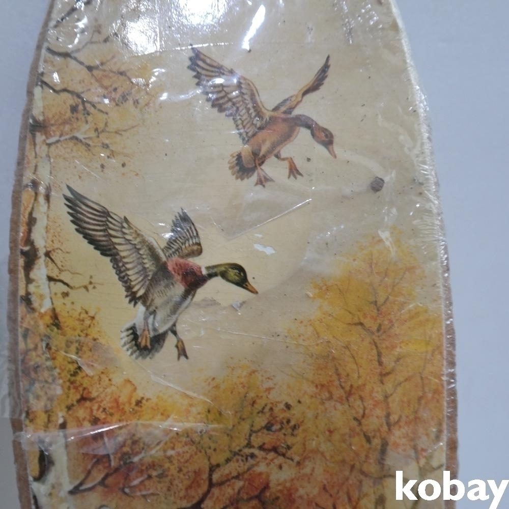 통나무 판위에 새그림이 전사되어져있는 오래된 소품 2점 입니다.