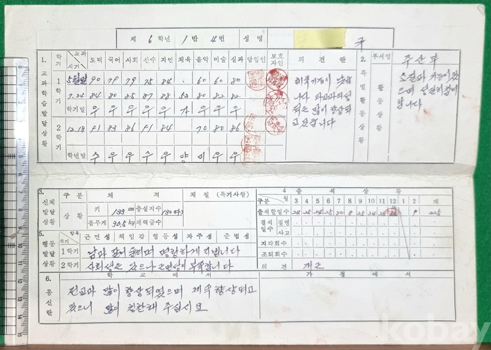 졸업장/통지표/상장_안정남부국민학교/1981년/6학년 생활통지표/