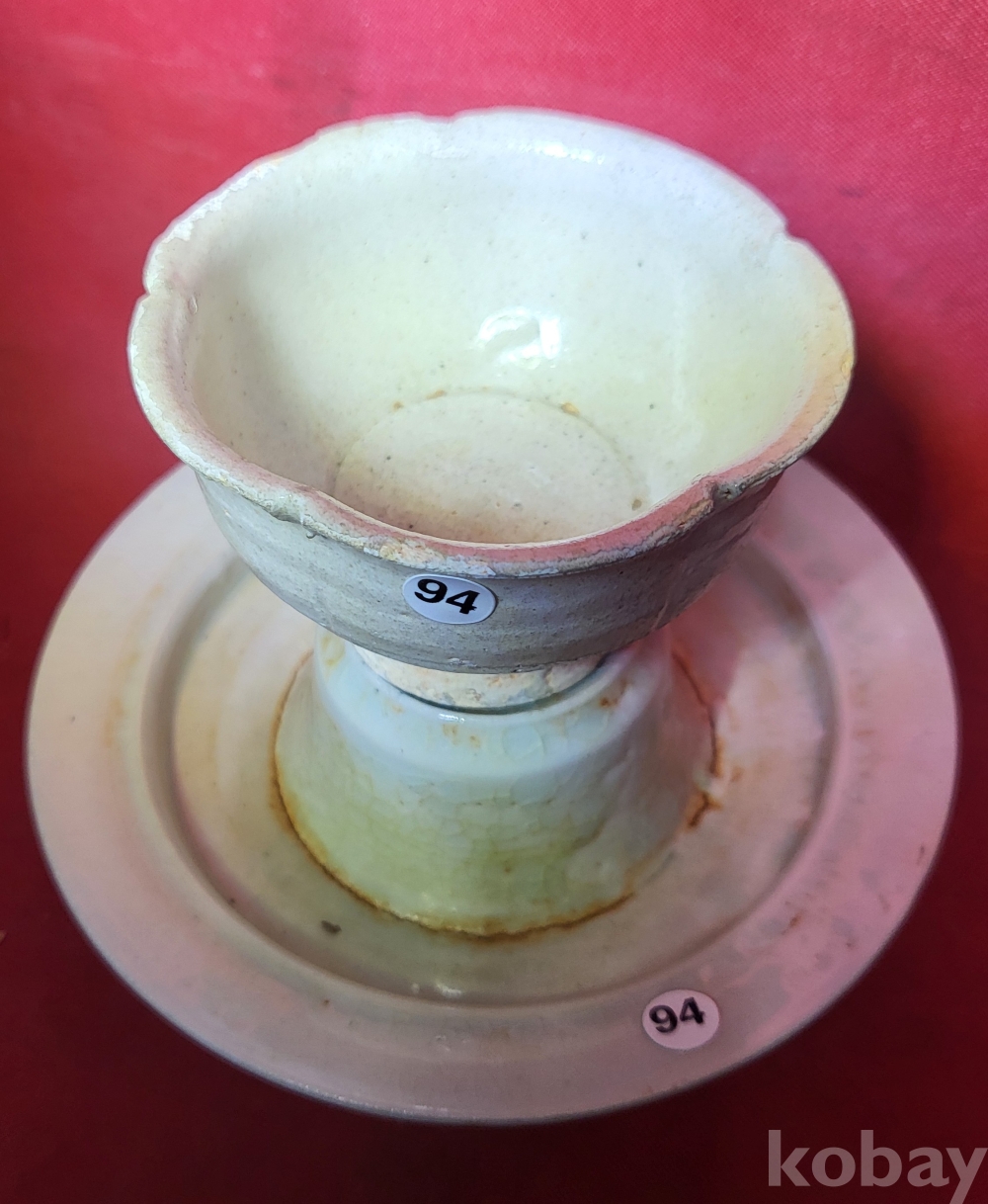 송백자(宋白磁) 길주요(吉州窯) 화형(花形)잔과잔대입니다,