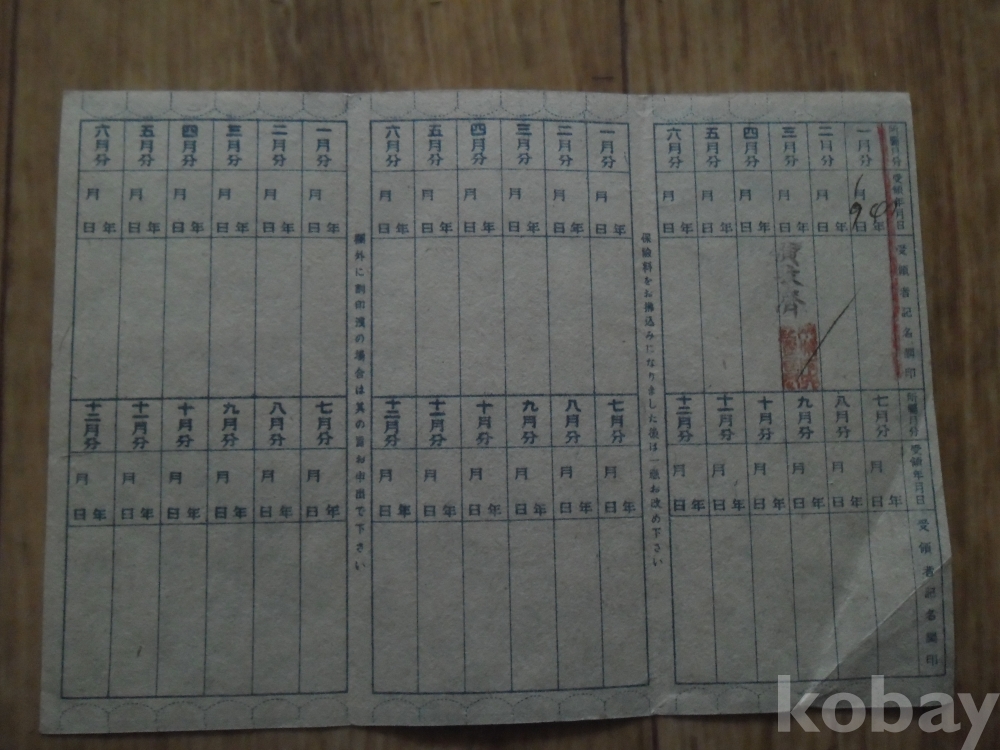 1947년 체신부 발행 보험료영수장(총독부용지사용)