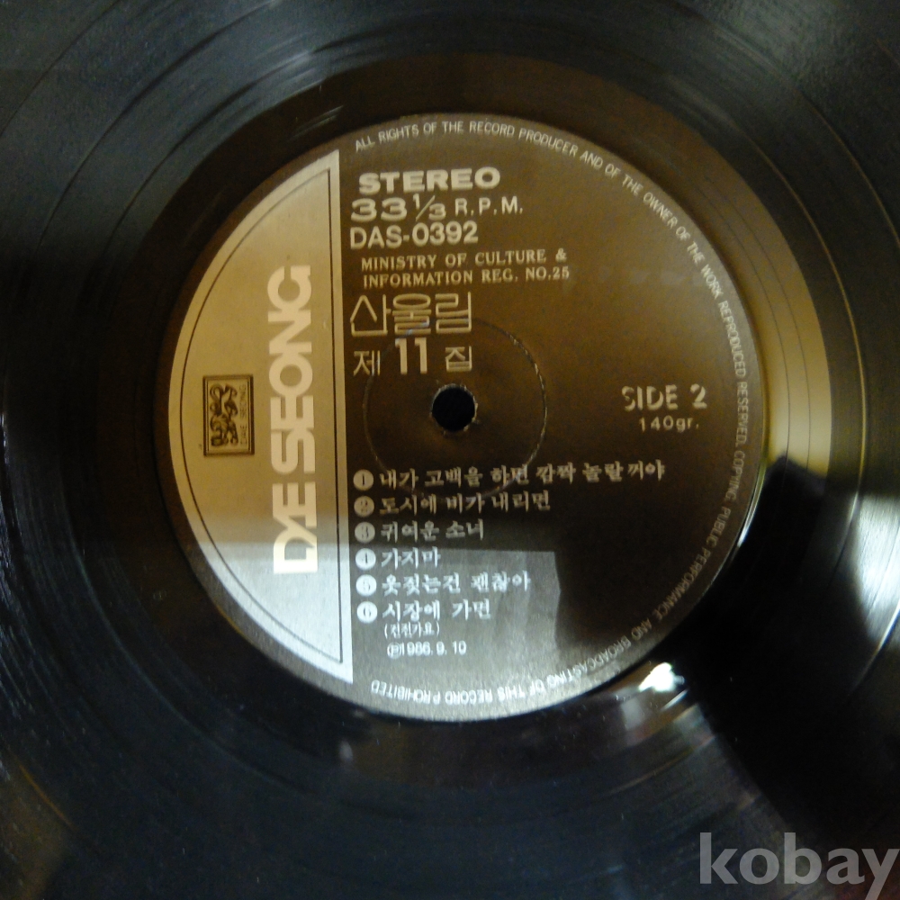 산울림 11집 LP음반 가요 국내가요 대중가요 LP판 엘피판