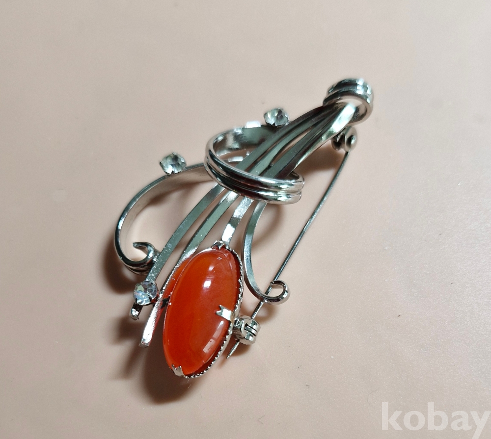 붉은 원석과 큐빅이 박힌 예쁜 브로치입니다.