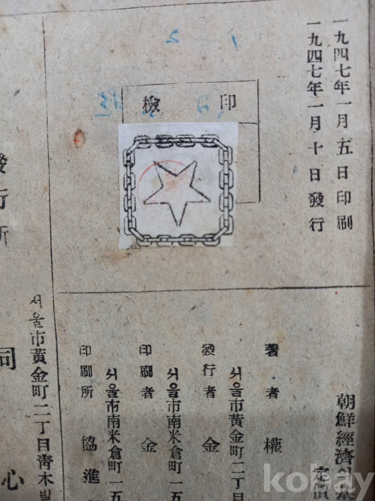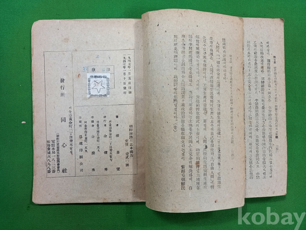 1947년 동심사에서 발행한 권태섭 저서 《조선경제의 기본구조》입니다.