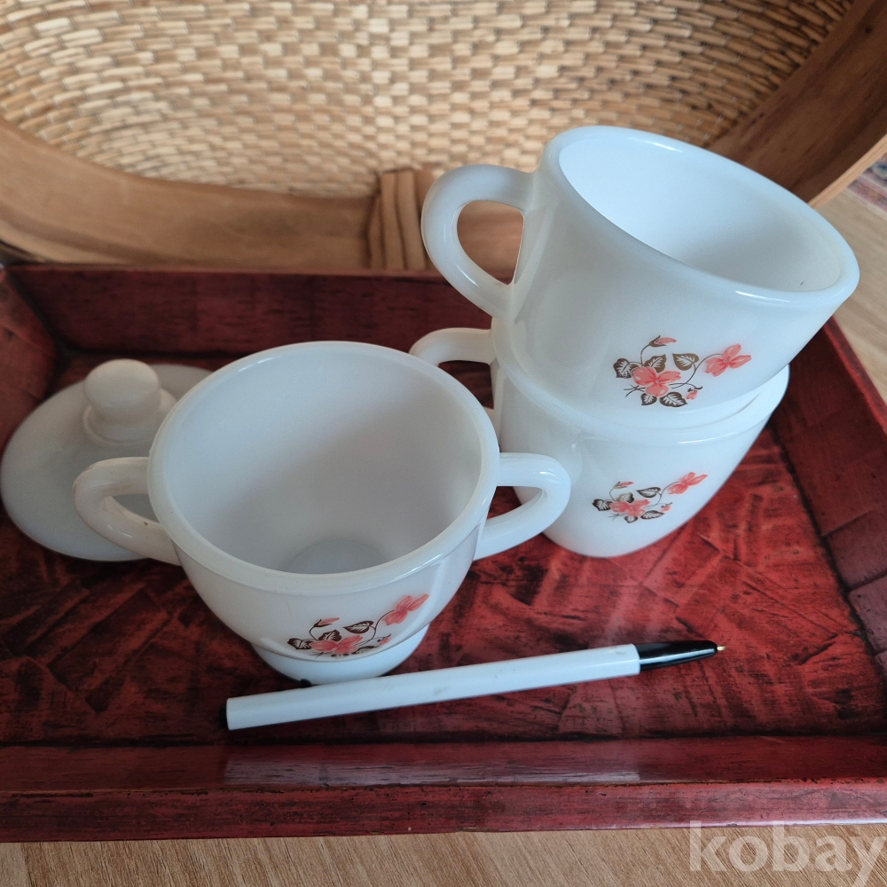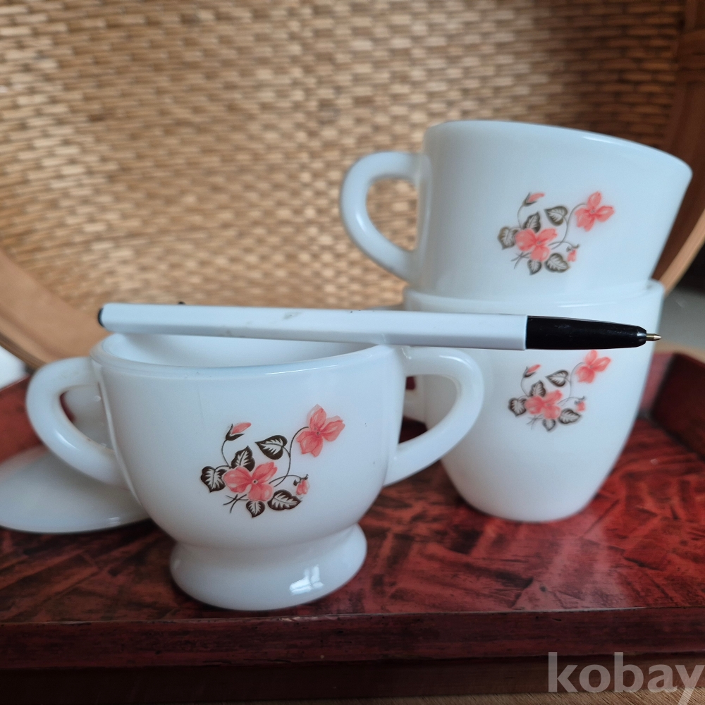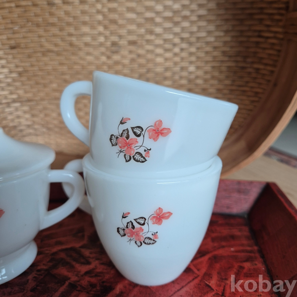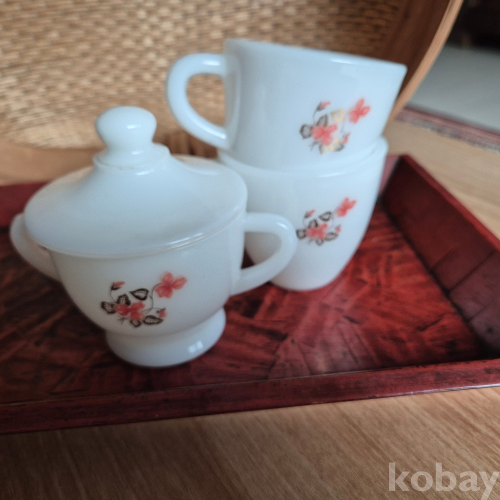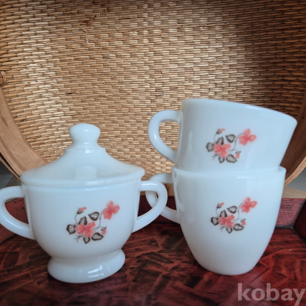빈티지 밀크글라스 슈가볼 + 컵 2점 세트입니다.