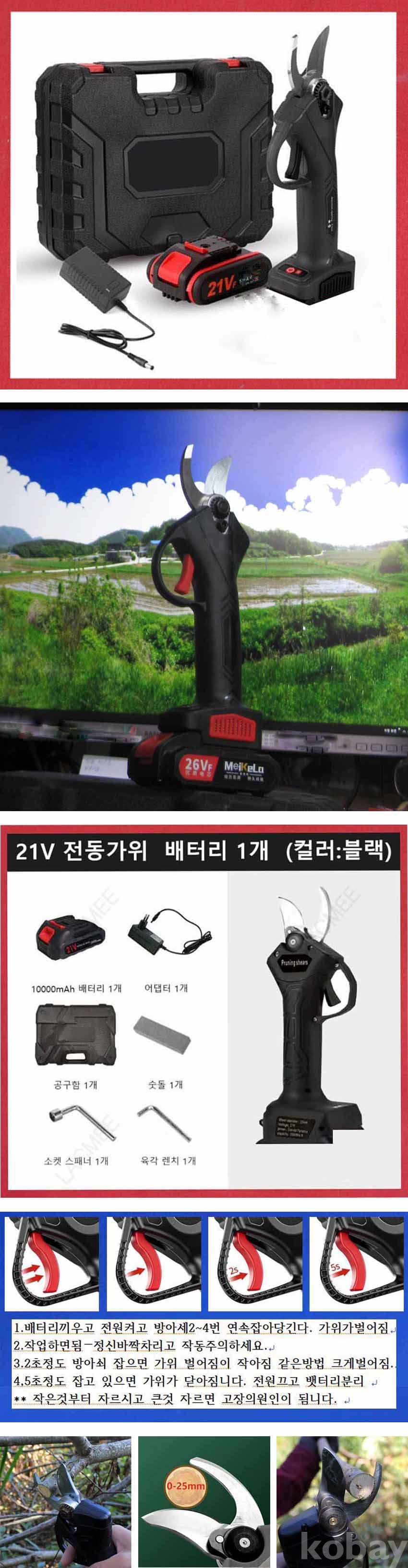 수동가위의 10배이상 작업 효율이 좋으며 두꺼운 나무 쑥싹 잘라짐