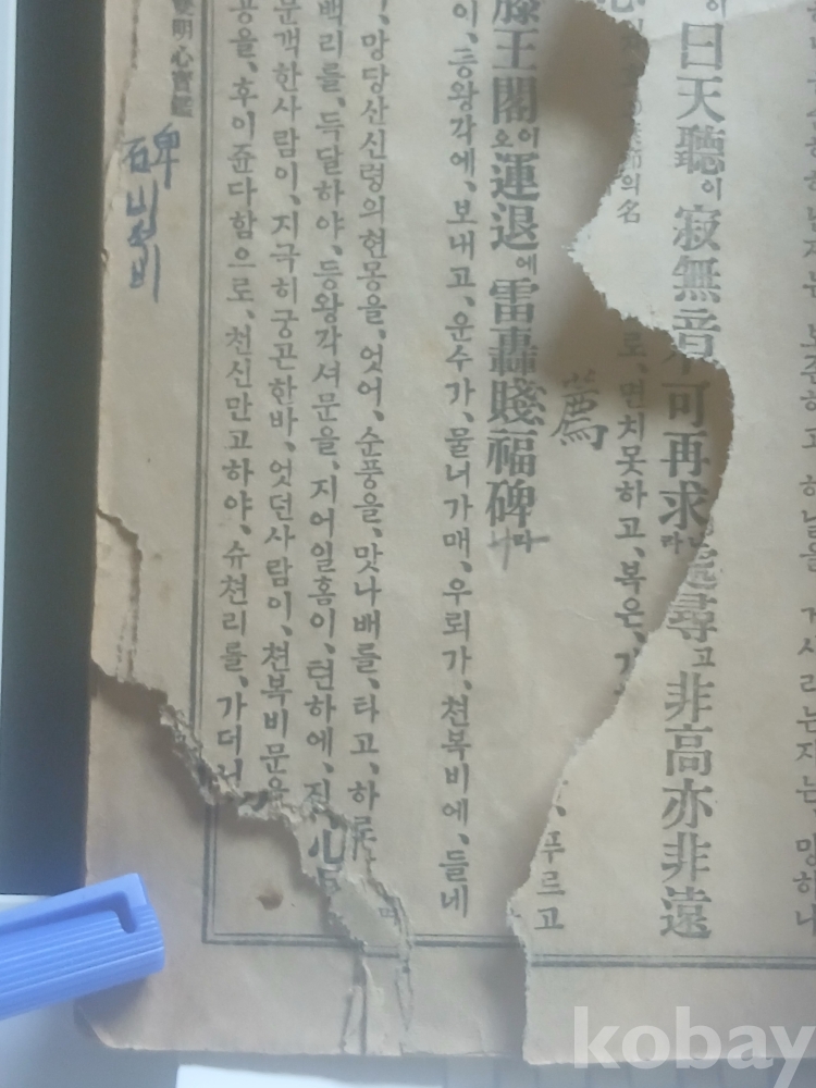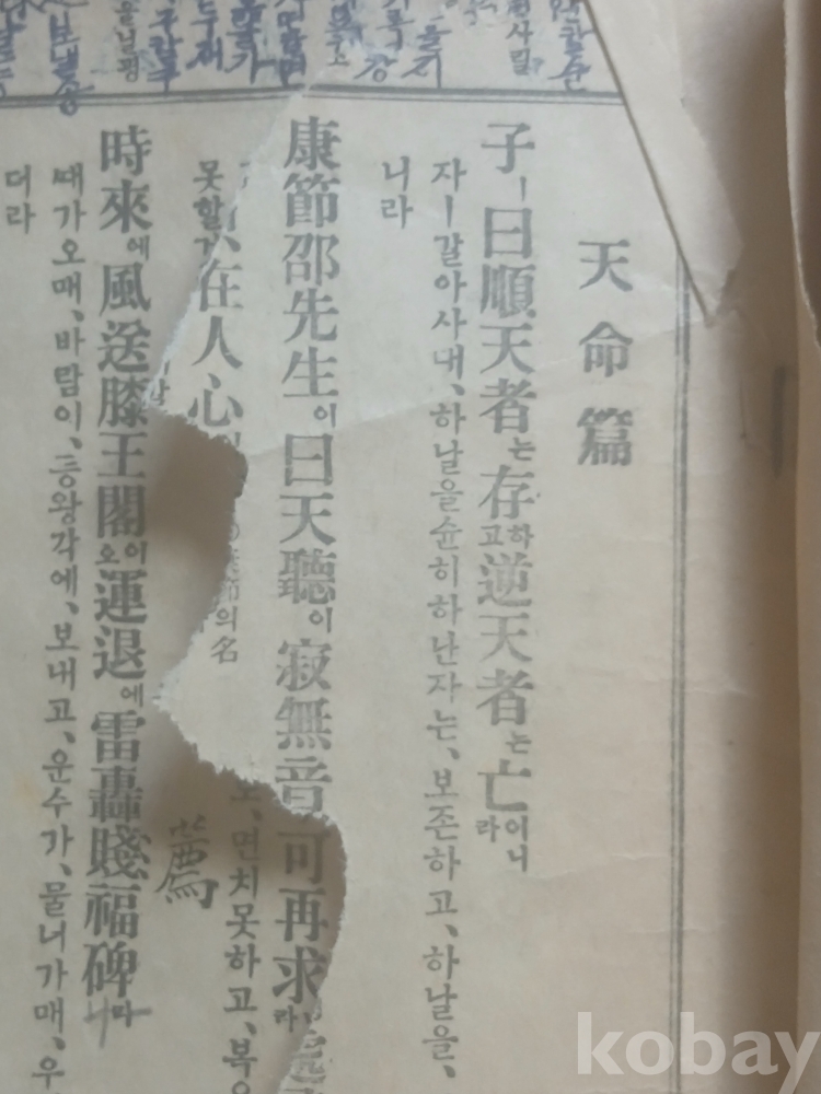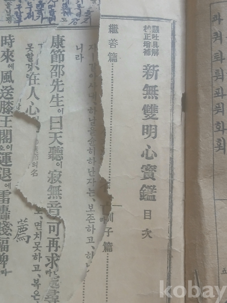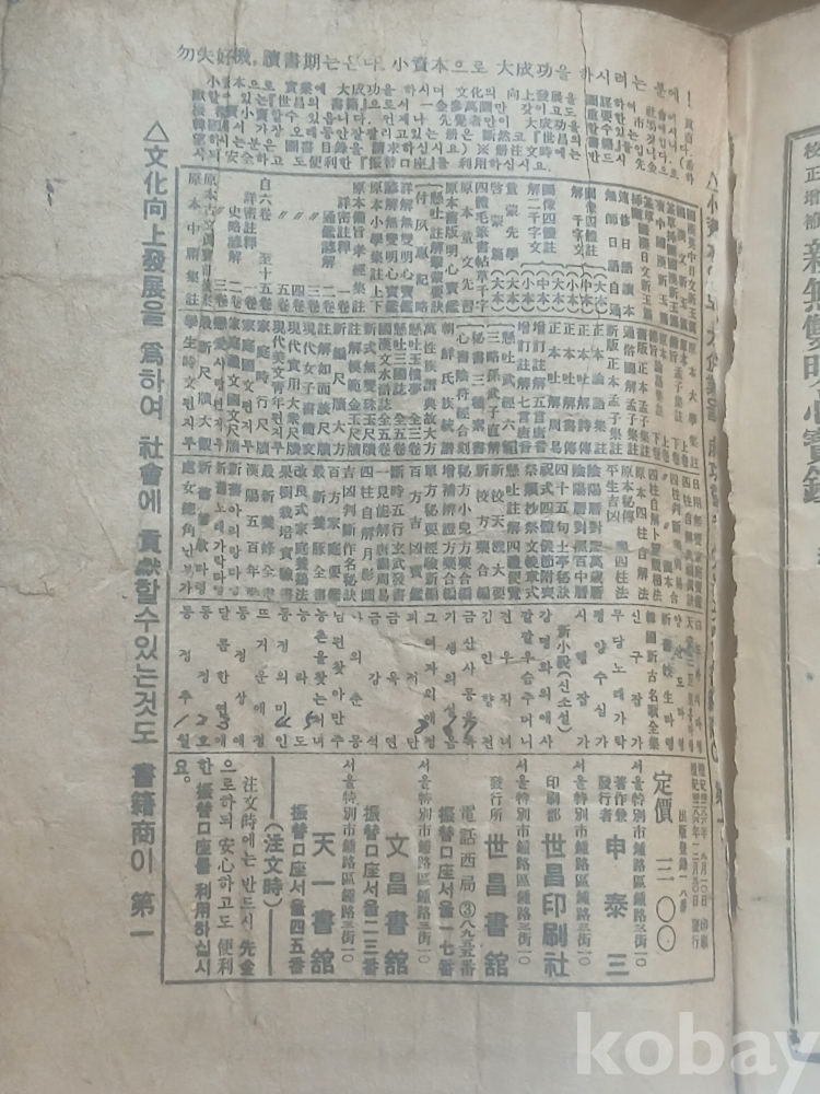 앞 부분 서너장 정도 찢어졌고 전체적으로 세월의 흔적이 농후합니다.