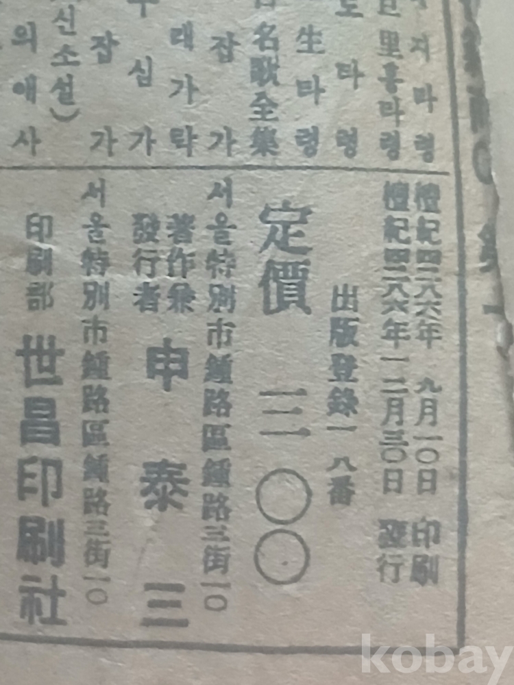 단기4286년(1953년)인쇄,발행