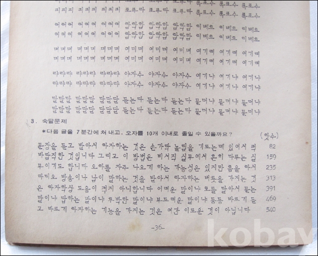 세로로 앞면 한 페이지만 보고 넘기게 돼 있구요. (뒷면은 글자가 뒤집어서 영문 타이핑 교본 인쇄)