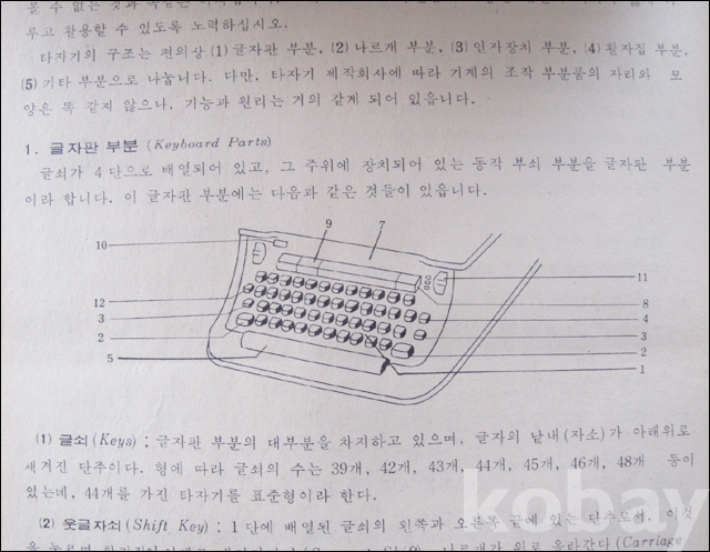앞면은 한글, 뒤집은 면은 영문 타자 교본입니다.