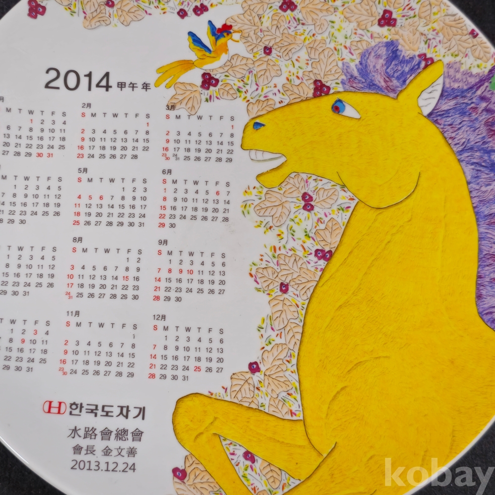 (((근현대사자료/캘린더접시))) 2014년 말띠 갑오(甲午) 년 한국도자기 캘린더 도자기 접시 (이흥원 作"숲속의 노래")