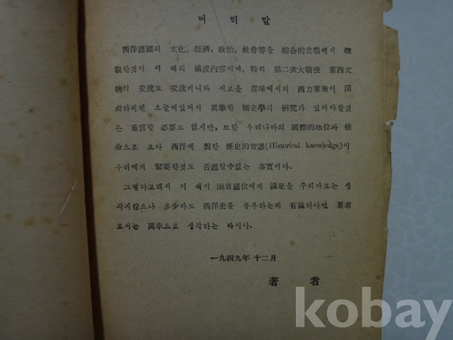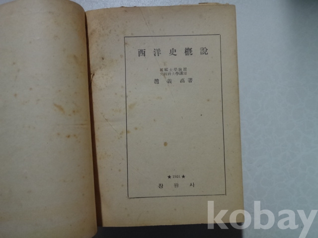 서양사 개설 (1951년, 연세대교수 조의설 저, 장왕사)